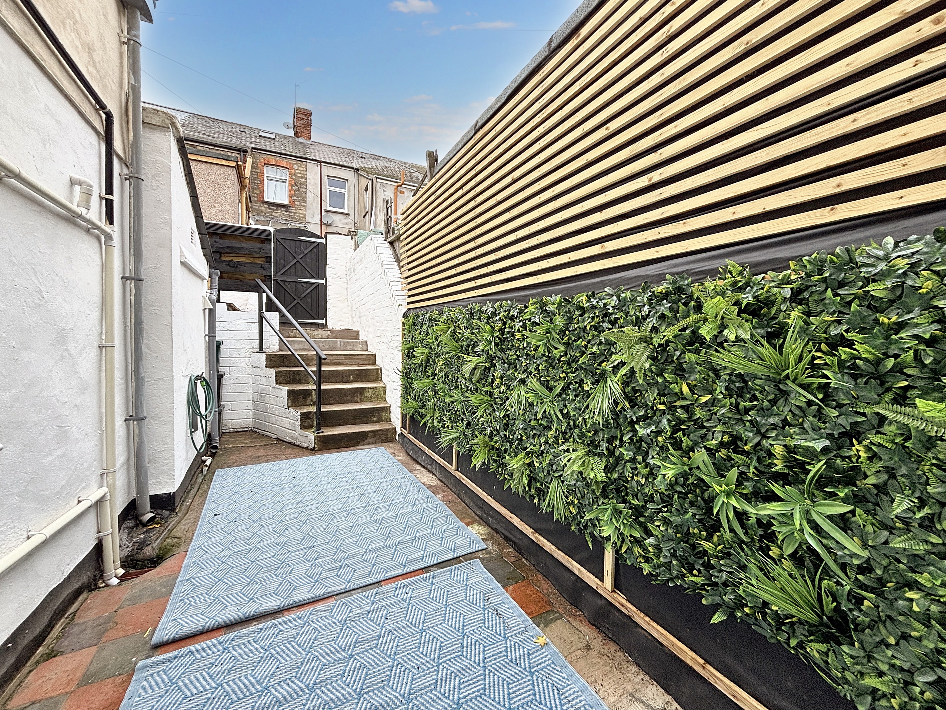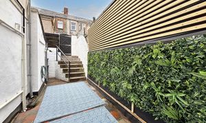 Step out of the kitchen onto an initial patio area complete with wooden fencing and a faux greenery decorative wall. Ascend the concrete steps to a further patio area, ideal for alfresco dining or relaxing in the sun. The garden is fully enclosed by a selection of brick walls and timber fencing, a new timber gate provides access to the rear lane.