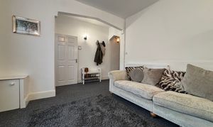 Entrance into the property via a uPVC front door with opaque glazing into a porch. The porch has tiled flooring, smooth walls and a textured ceiling. A door leads into the lounge.