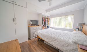Free standing cooker, extractor, garden shed, greenhouse, some carpets, curtains and light fittings, all blinds and fitted wardrobes in one bedroom.