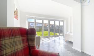 The heart of the property is the impressive open-plan kitchen and dining space, measuring over 25ft in length, creating a sociable hub ideal for family life and hosting guests. Multiple reception areas provide flexibility, allowing space for relaxing, working from home, or entertaining, while large openings and garden access allow natural light to flood the living space.