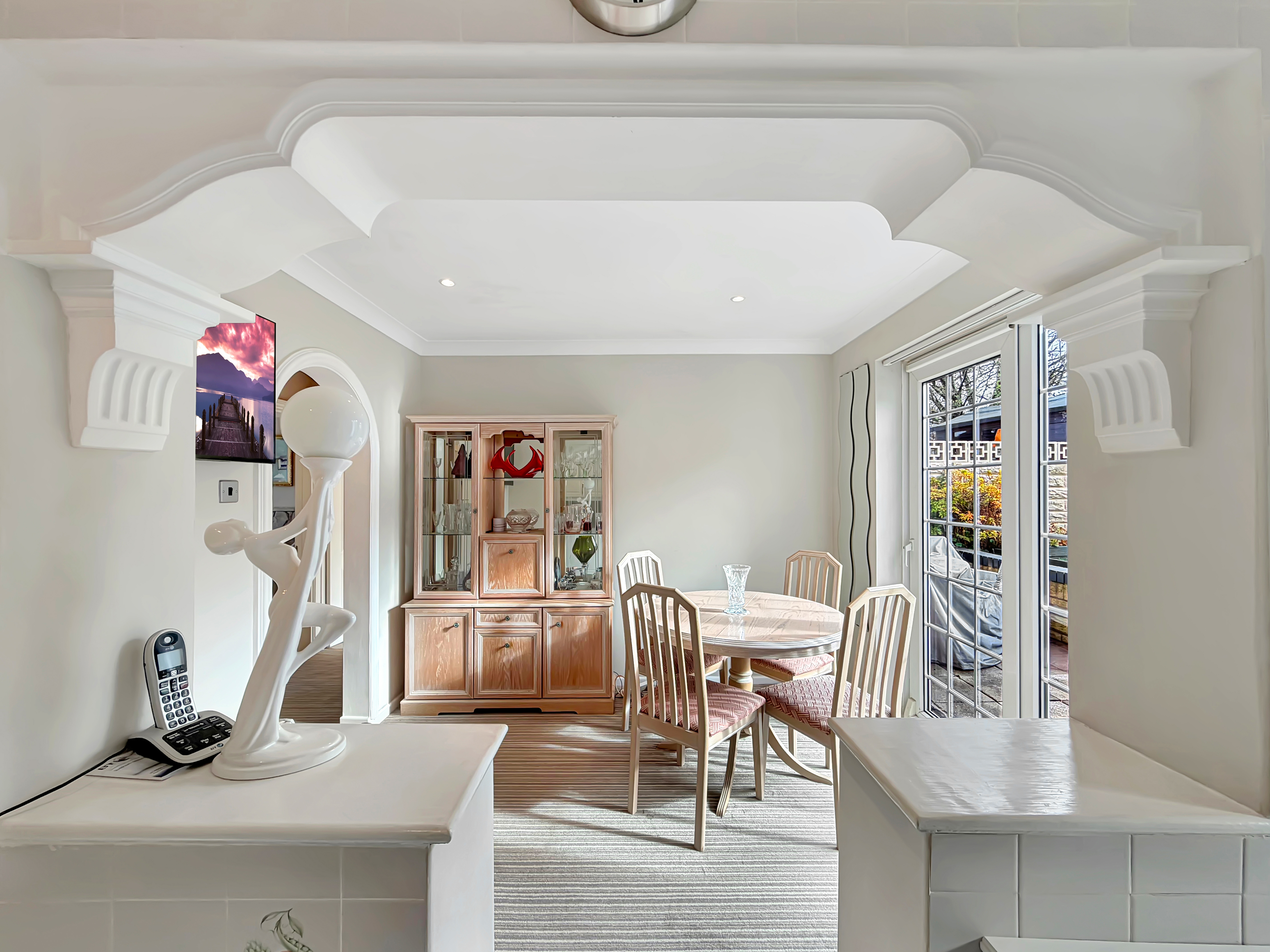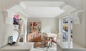 Beyond the sitting room, the elegant dining room seamlessly transitions into the kitchen, creating a harmonious flow for both every-day living and entertaining.