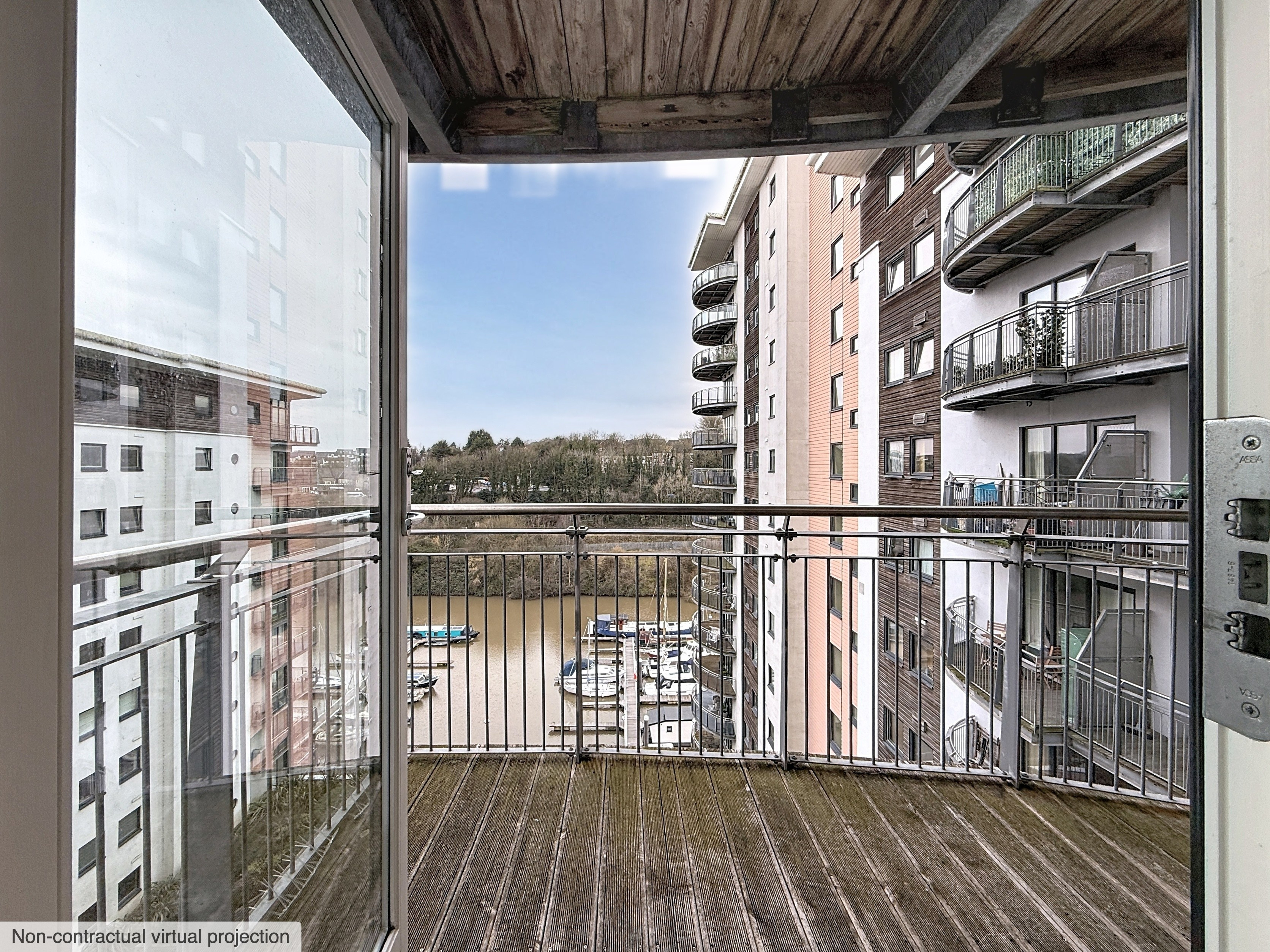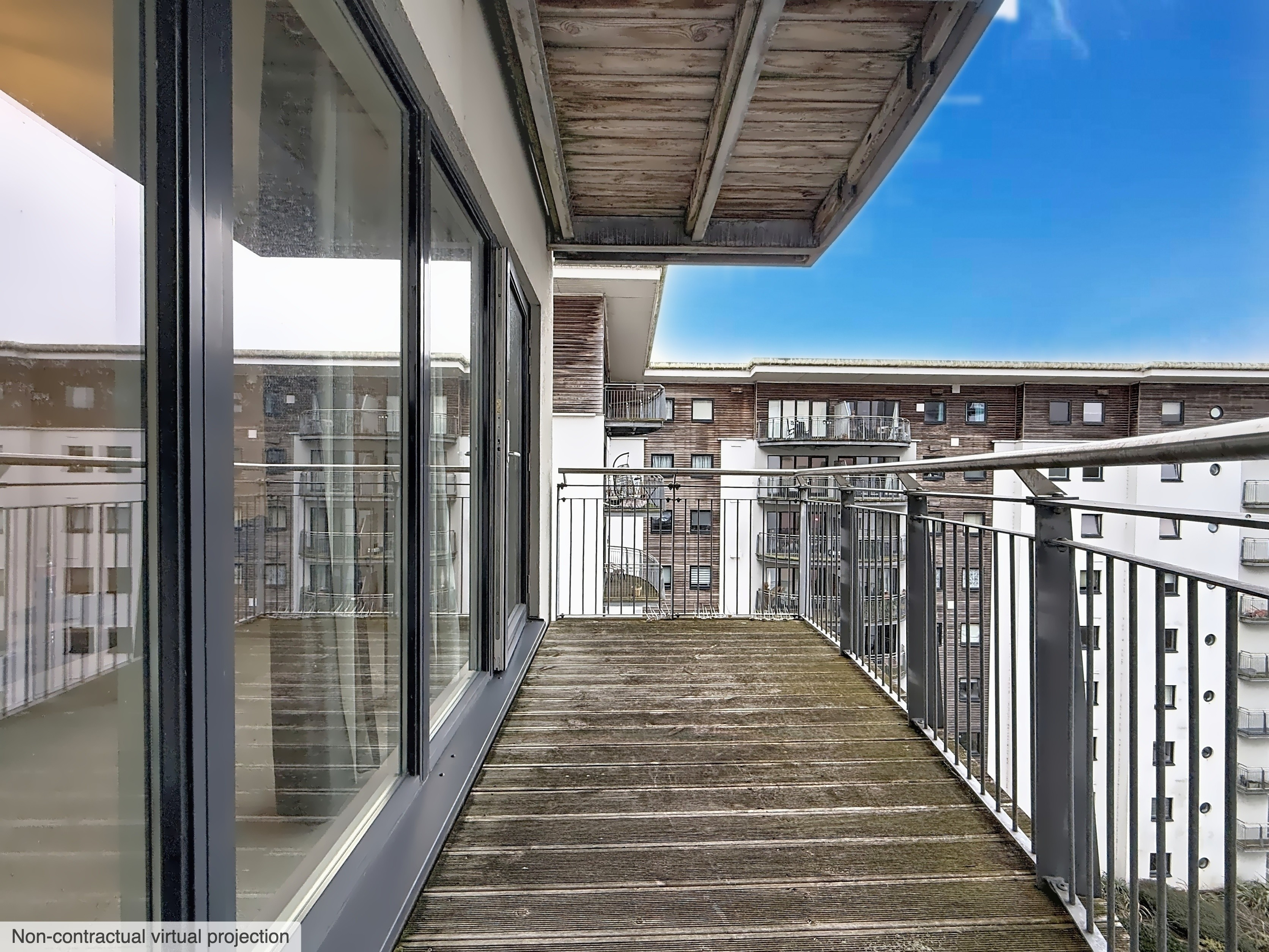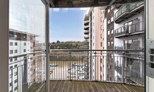 Accessed directly from the living area through large glazed doors, the balcony enhances the sense of space and natural light throughout the main reception room. The elevated position offers both privacy and an open outlook rarely found at this price point in Cardiff Bay.