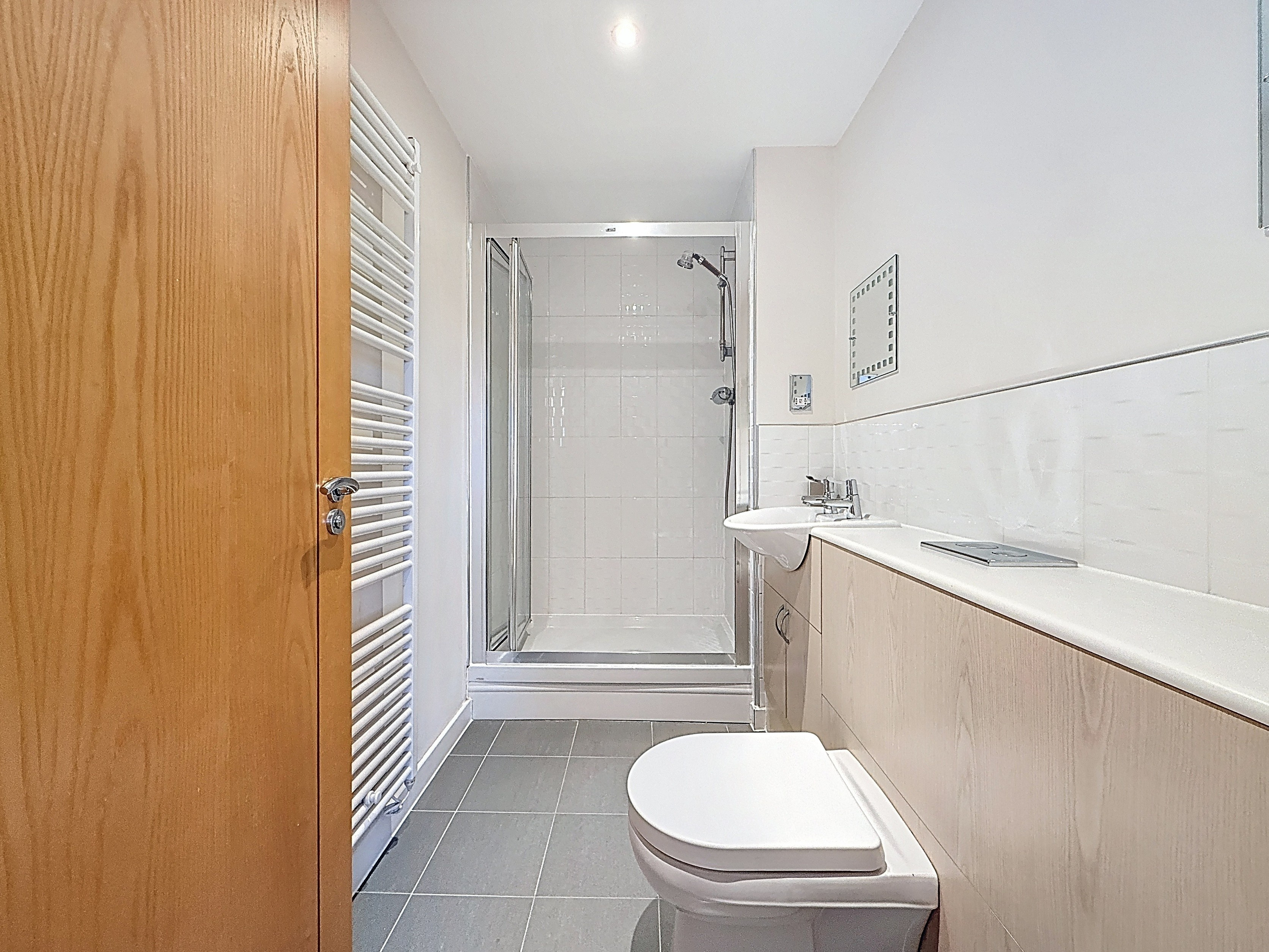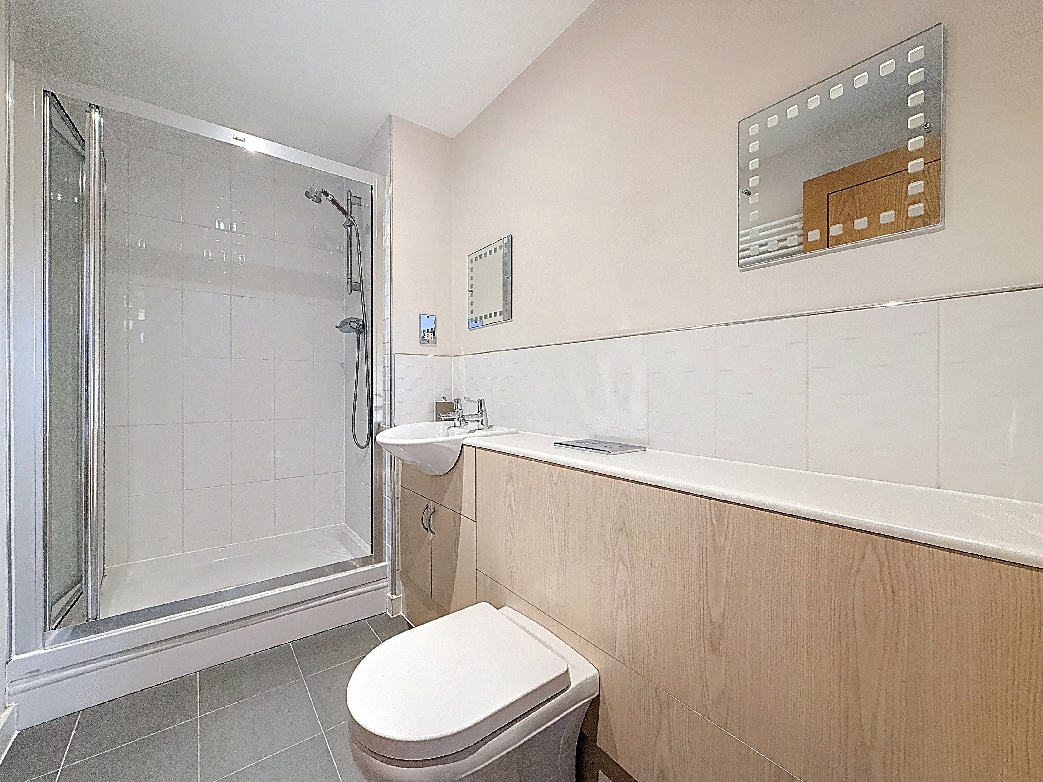 The ensuite shower room to the principal bedroom is fitted with a modern suite including shower enclosure, wash hand basin and WC.