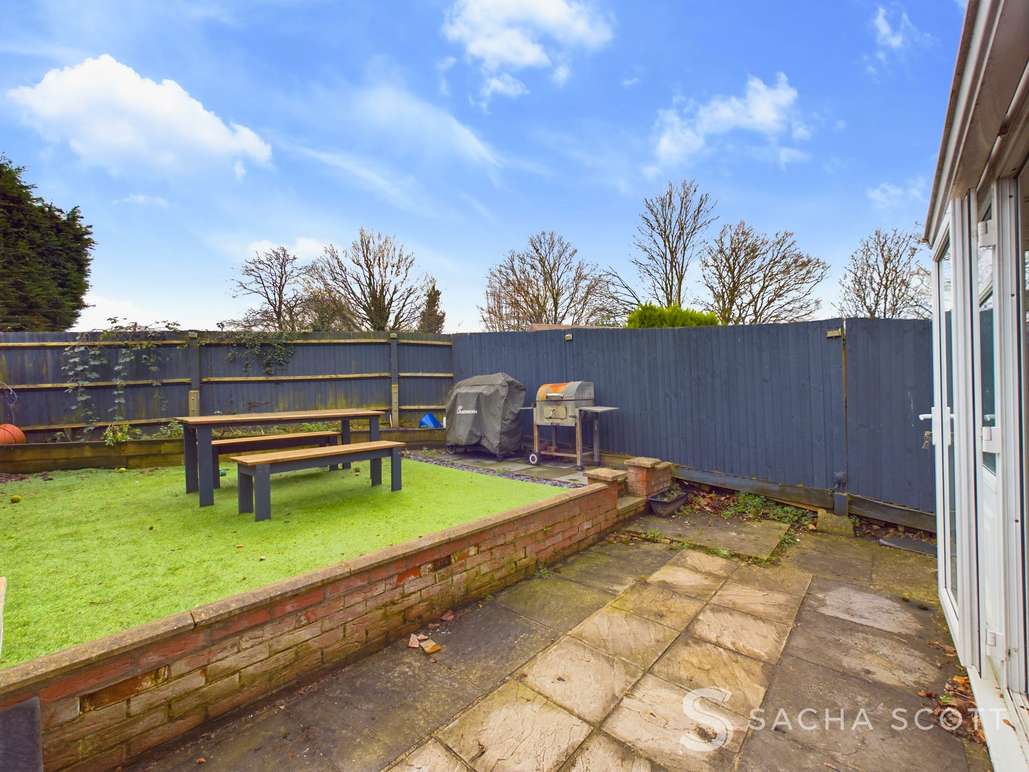 South east facing garden measuring approximately 30ft x 20ft with a paved patio area, and raised lawn area with further slabs to accommodate a barbecue area. The property also comes with side access and external lighting.