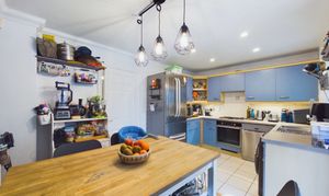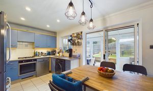 A fantastic area to spend time with family and friends, this well thought out kitchen offers ample storage and work surface space, room for all expected appliances and a large dining area overlooking sliding doors to the conservatory.