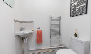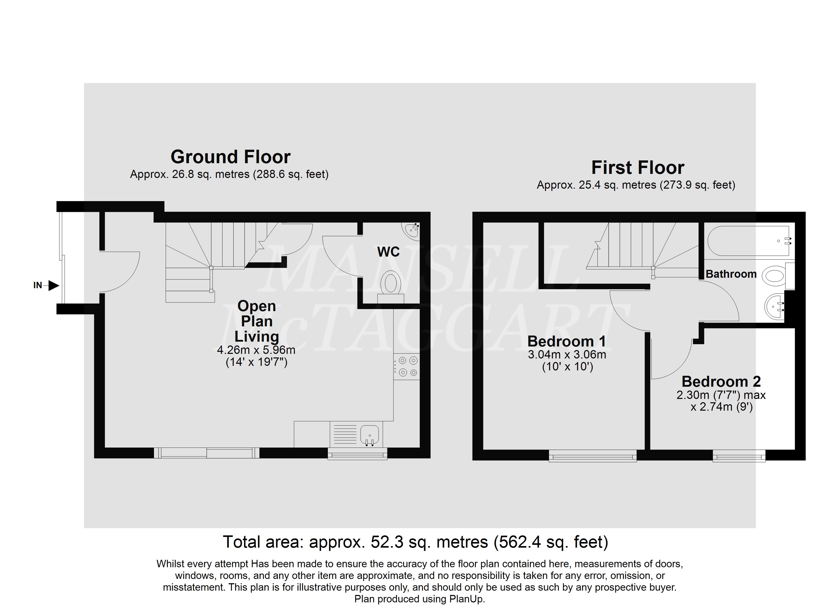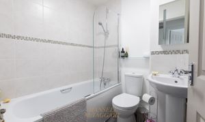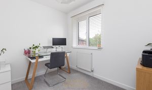 Heading upstairs, there is a landing with access to the bathroom and both bedrooms. The bathroom is fitted to white suite and partially tiled. Both bedrooms are well proportioned, bedroom 1 comfortably houses a king size bed and furniture, with an area which ingresses over the stairs, perfect for fitted/walk-in wardrobes. Bedroom 2 is a small double room/ large single.