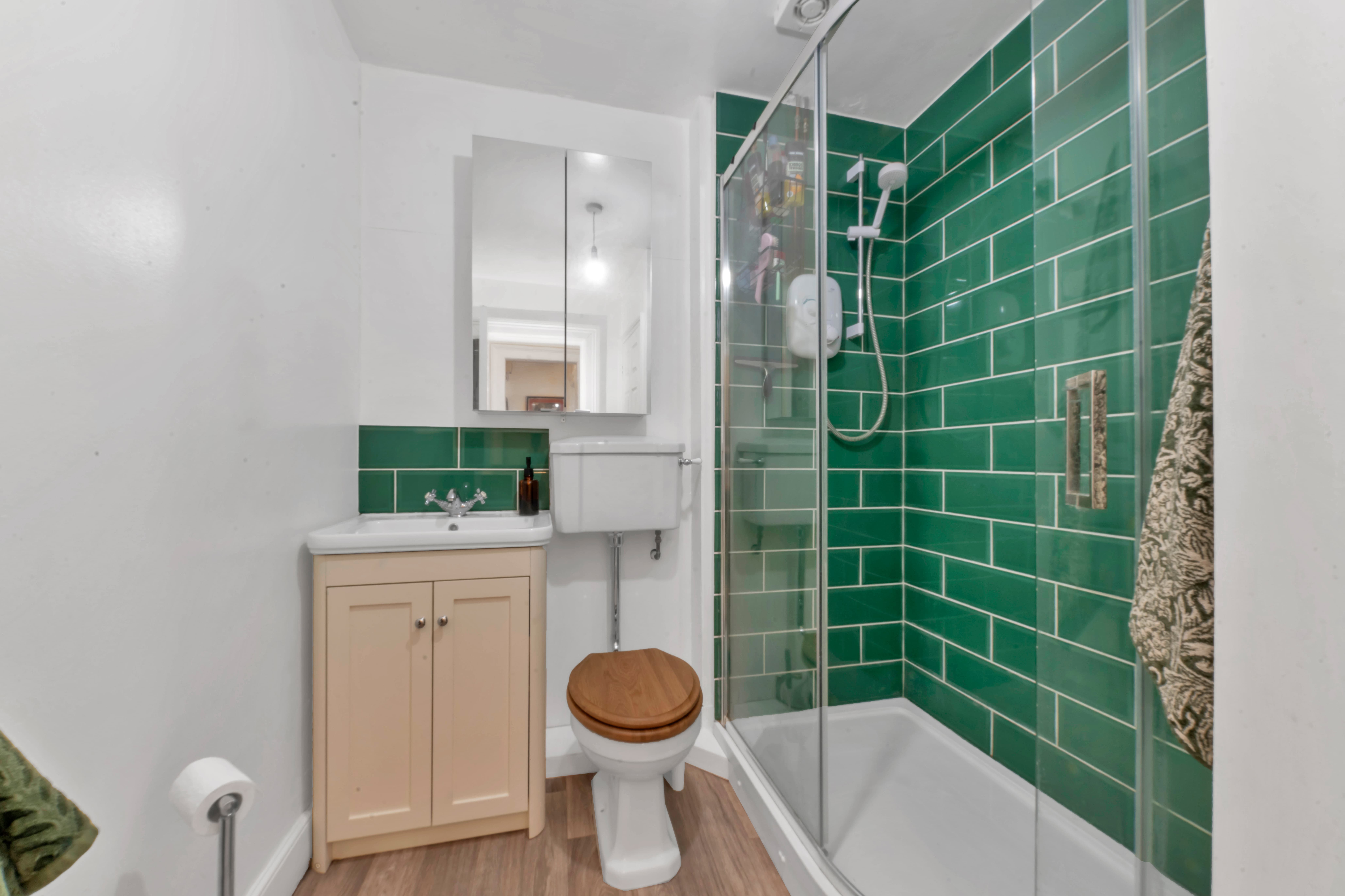 Through to the sleeping quarters, this lovely home continues to impress, with a large double bedroom and a bathroom, comprising a shower, a WC, a hand wash basin and integrated storage.