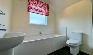 A welcoming hallway leads to two generous reception rooms - ideal for day-to-day living, dining and entertaining. Upstairs you’ll find two well-proportioned bedrooms, served by a part-tiled bathroom featuring a gloss-white suite, separate shower cubicle, pedestal basin and W.C. The property retains its traditional feel while offering plenty of opportunity to update finishes to your own taste.