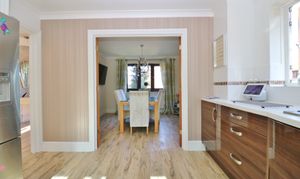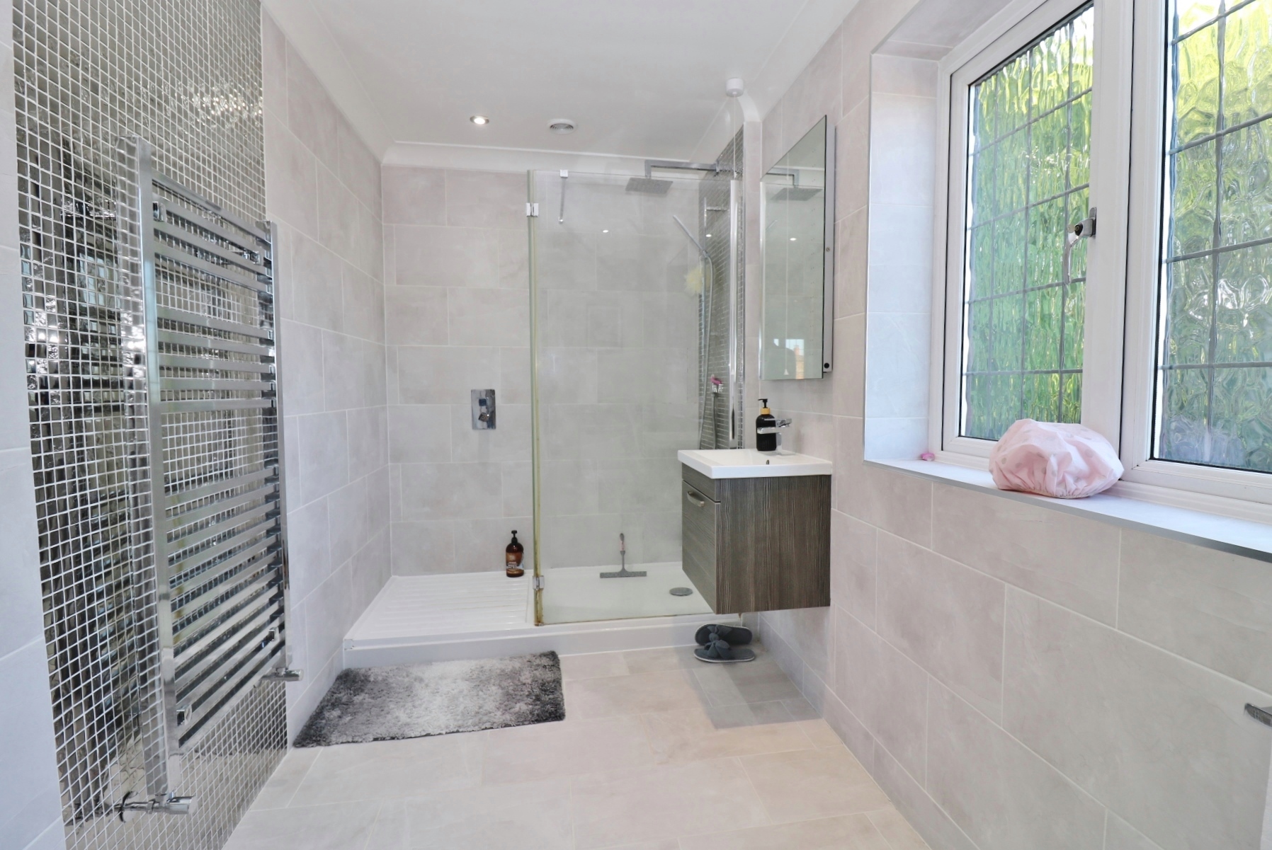 The ground floor accommodation benefits from its own private entrance, offering scope to be used as a self-contained annexe. There is a spacious family room and a modern kitchen with a range of wall and base units and a built-in double oven, gas hob with extractor over, an integrated fridge/freezer and dishwasher.
