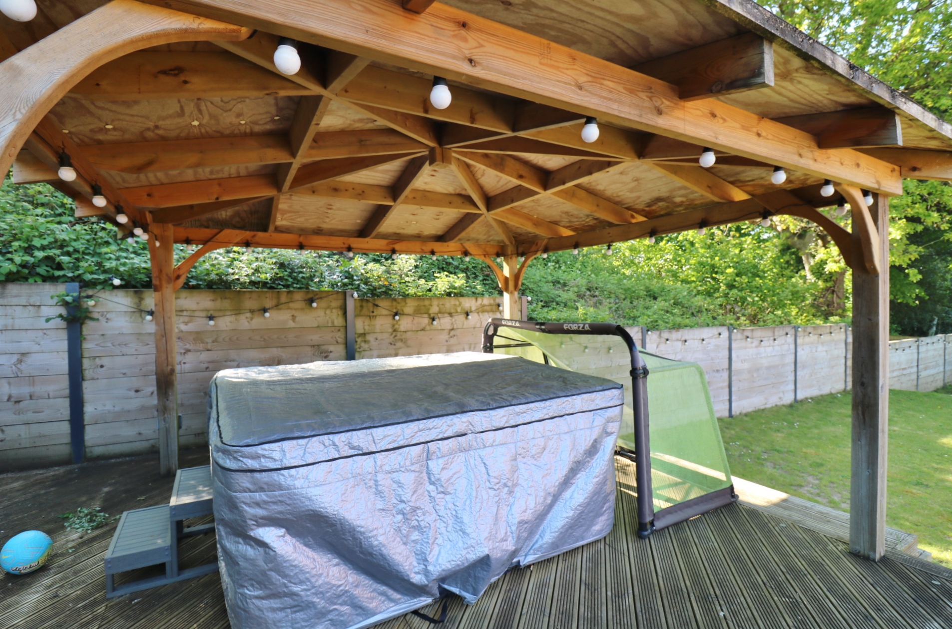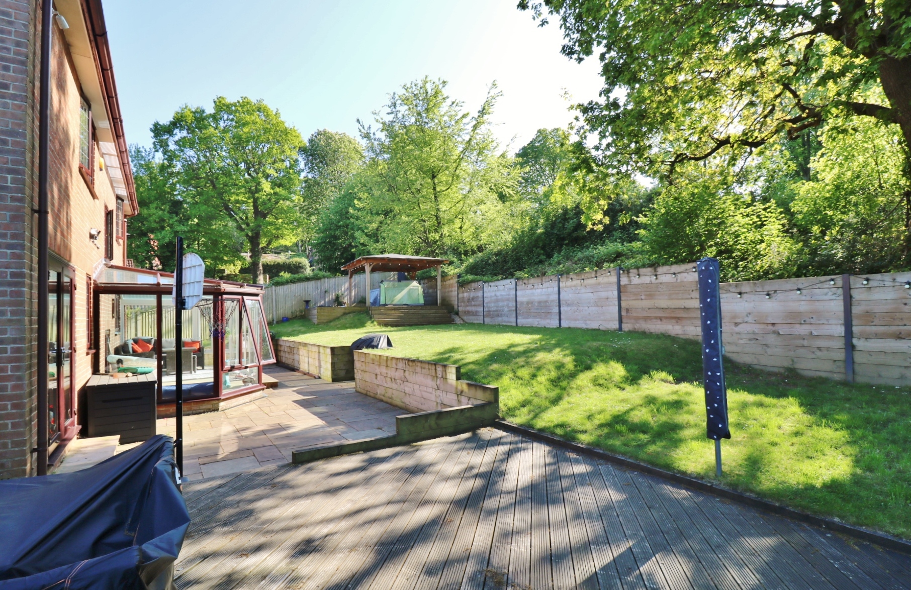 To the front there is driveway parking for several cars and access to the integral garage. The attractive rear garden enjoys a private outlook backing onto trees and has a paved patio area spanning the width of the property. The rest of the garden is mainly laid to lawn with an additional seating area to one corner with a pergola over.