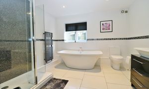 On the top floor there are four, well-proportioned bedrooms, three of which benefits from built-in wardrobes, including the large master which features a stylish en-suite with a walk-in shower cubicle, vanity wash hand basin, WC and a heated towel rail. The modern family bathroom comprises a P-shaped bath with shower and screen over, WC, vanity wash hand basin and a heated towel rail.