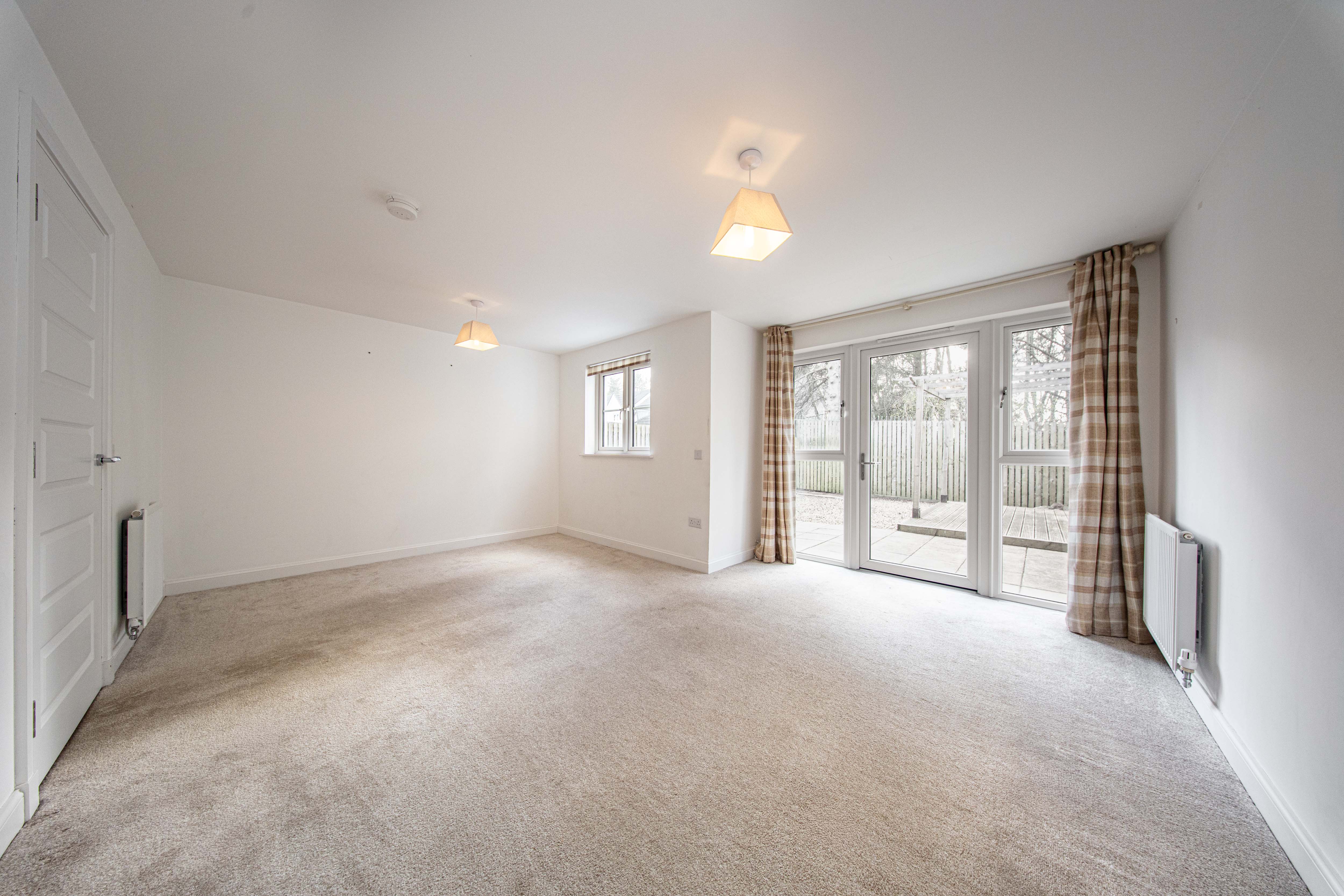 Excellent sized living area located at the rear of the property with space for dining. There are two ceiling light fittings, painted walls, rear facing window, patio doors leading to the rear garden, two radiators and carpet flooring.