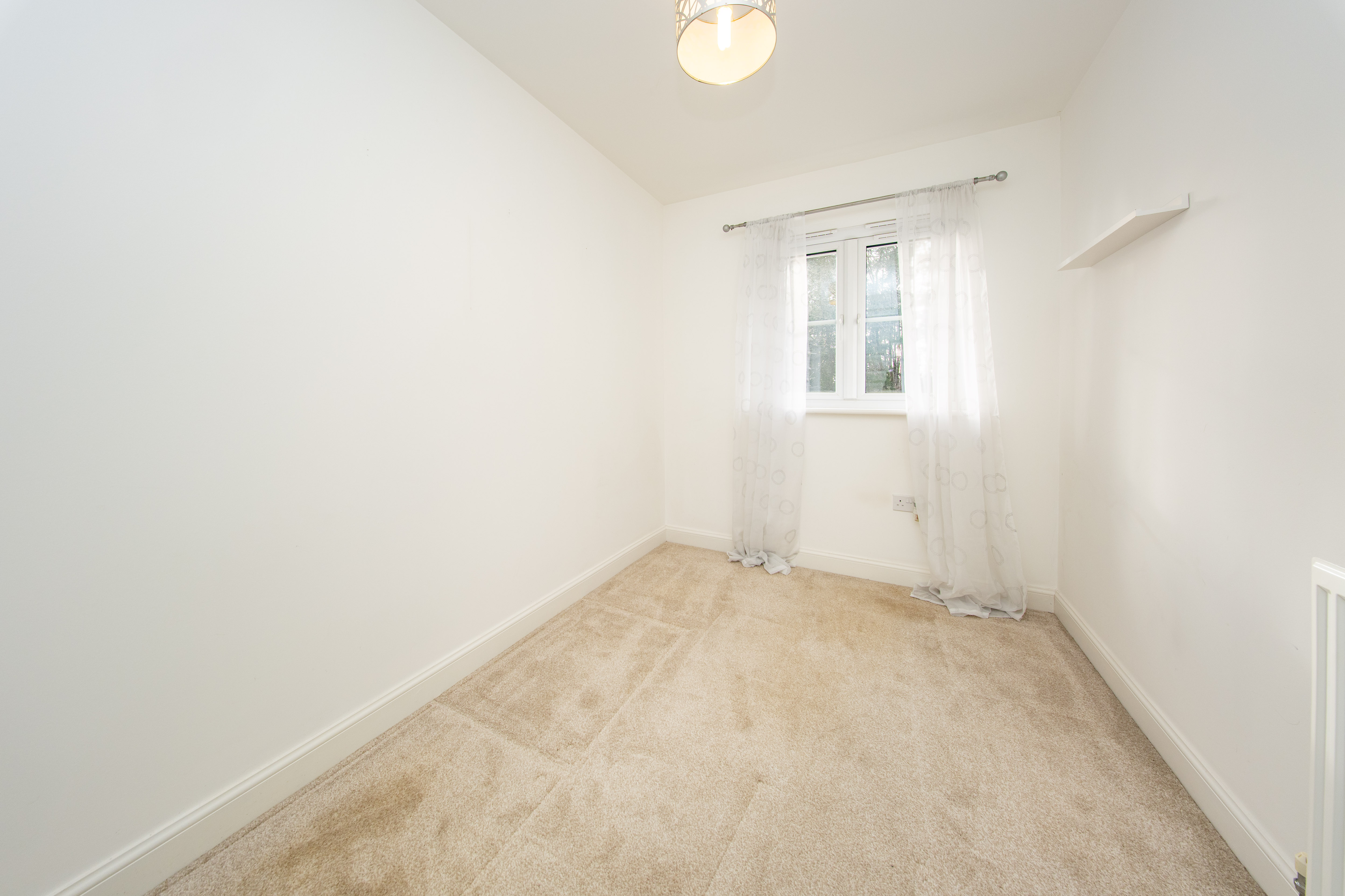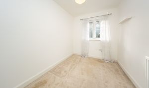 Single Bedroom located at the rear of the property which can be used as a bedroom or home office. There is one central light fitting, painted walls, rear facing window, one radiator and carpet flooring.
