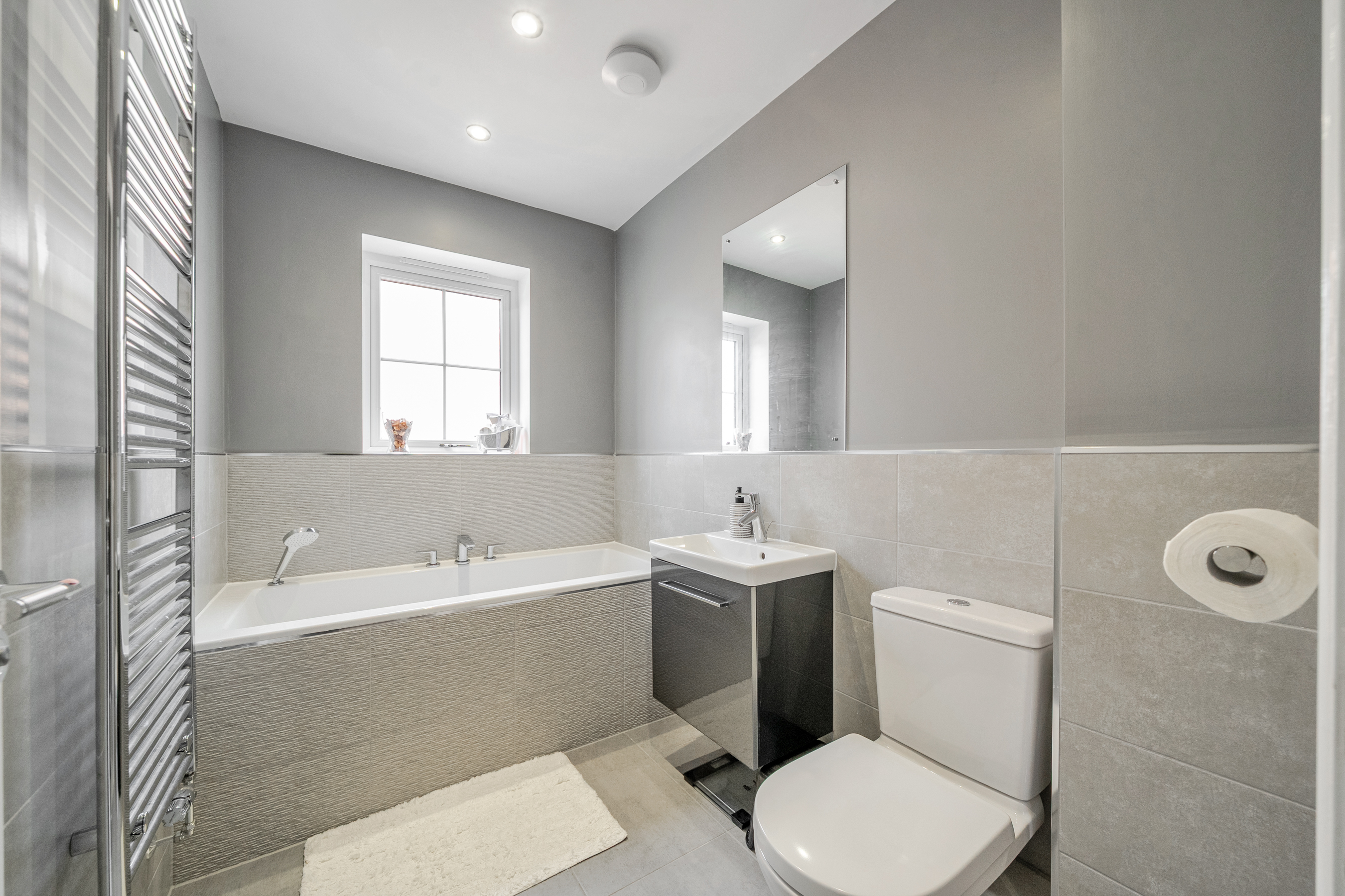 Upstairs, a central landing leads to three generously proportioned bedrooms - two doubles and a larger-than-usual single. The principal bedroom benefits from fitted wardrobes and a modern en-suite complete with W.C and shower. The property also benefits from the recently half boarded loft with loft ladder for extra storage.