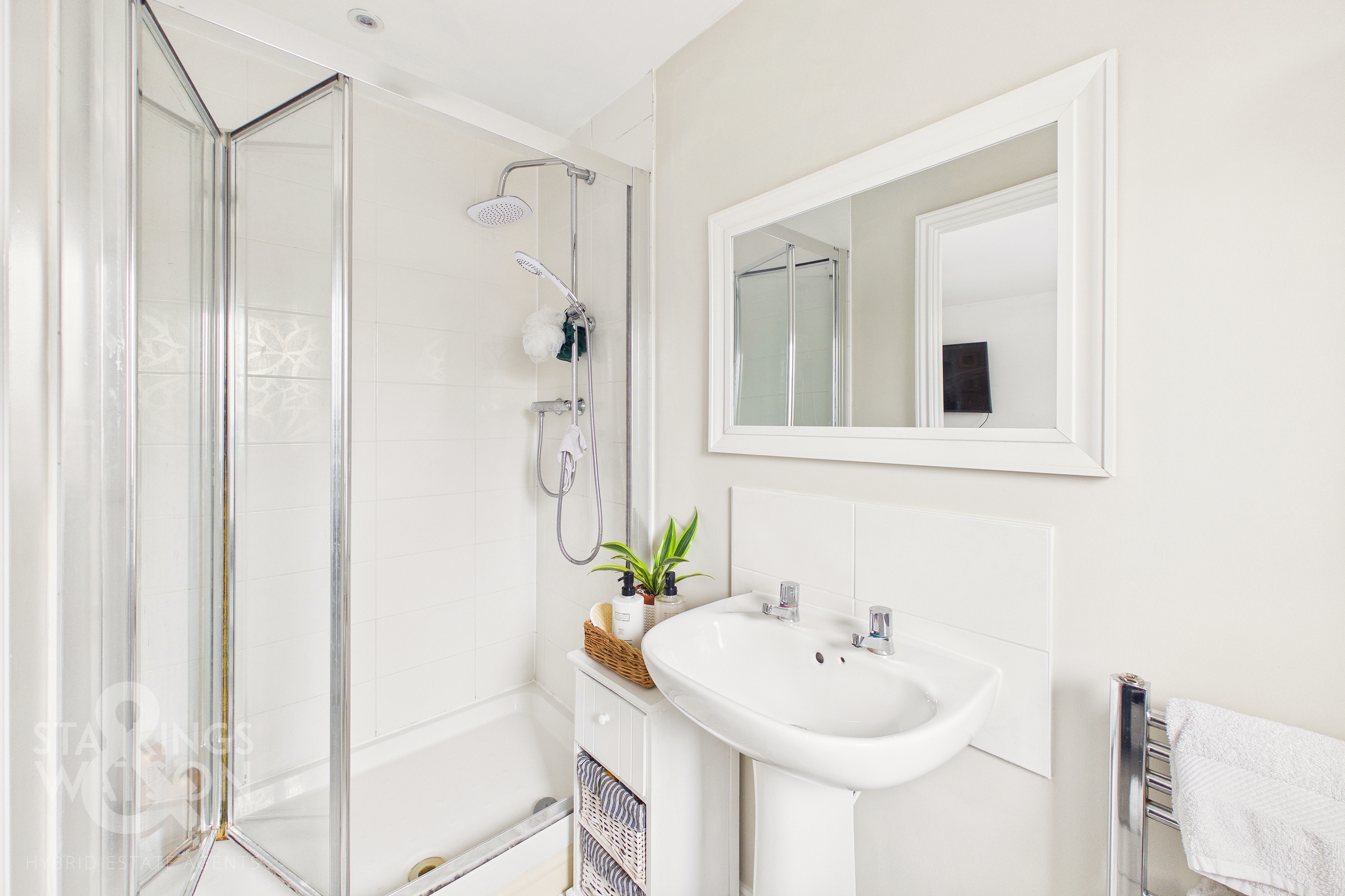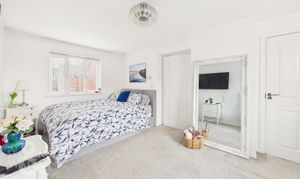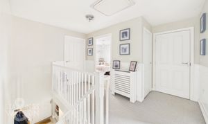 Heading upstairs the carpeted landing includes a built-in airing cupboard and loft access hatch, with doors leading off to the four bedrooms. The main bedroom includes dual aspect views to front and rear, with fitted carpet underfoot, ample space for wardrobes and a door leading to a private ensuite shower room - finished with a white three piece suite including a walk-in double shower cubicle with a twin head rainfall shower with tiled splash-backs and heated towel rail. The remaining three bedrooms are all finished with fitted carpet and uPVC double glazing, whilst being served by the main family bathroom which also includes a panelled bath with a shower and glazed shower screen over.