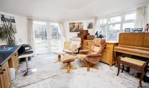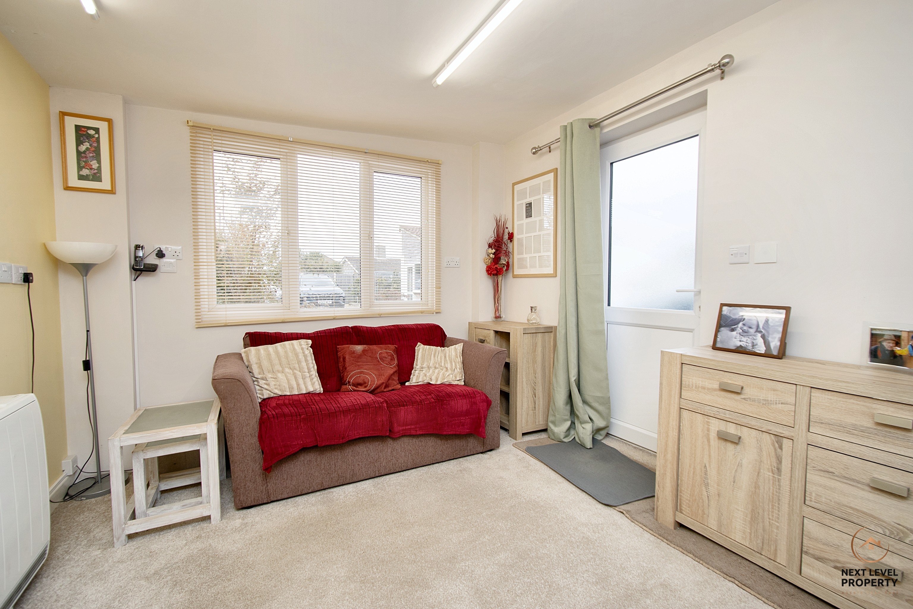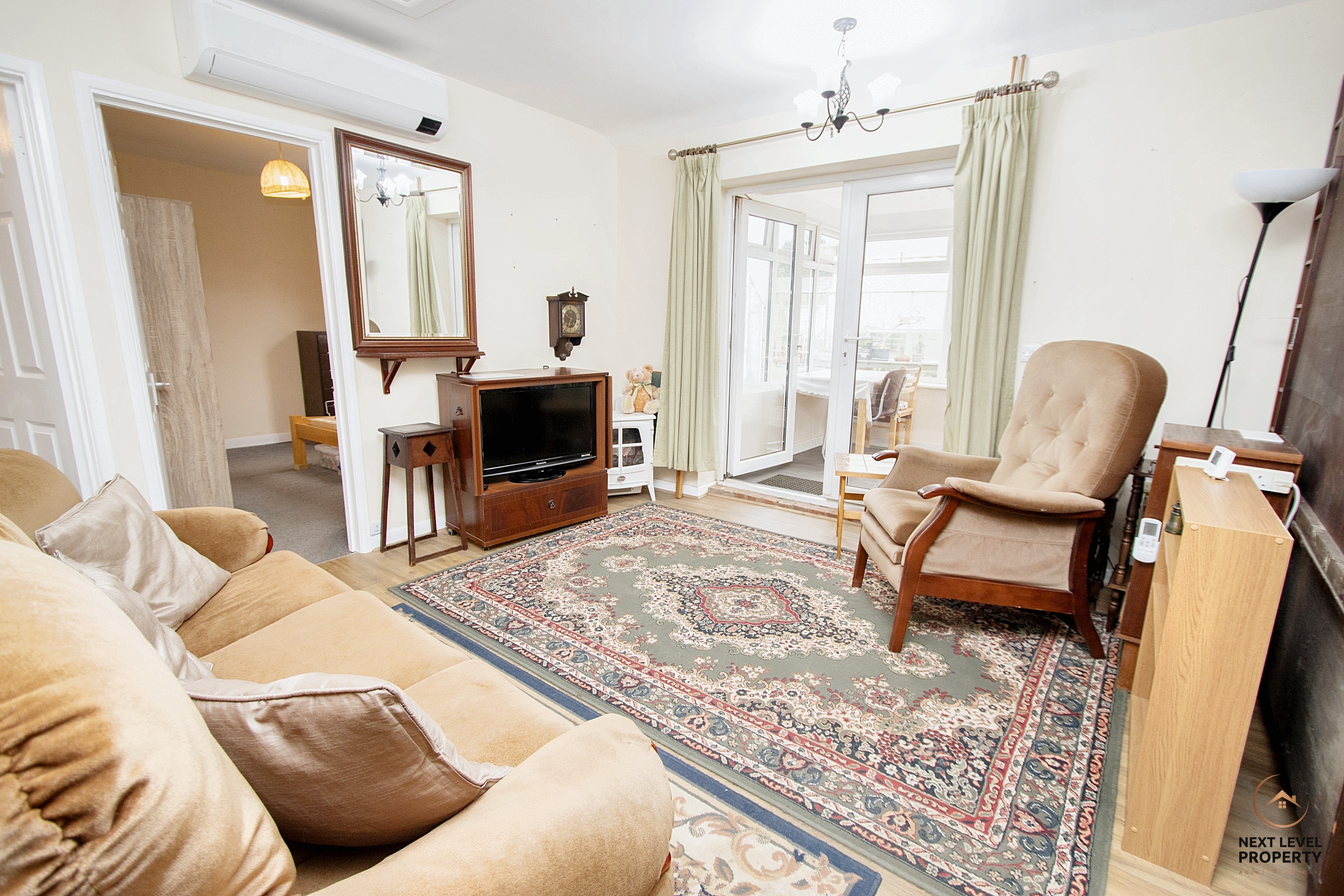 A generously sized reception room, added by the current owner, offering versatile space suitable for a variety of uses. French doors open to the side of the property, creating a seamless link to the outdoors, while a front-facing window ensures the room is bright and welcoming.