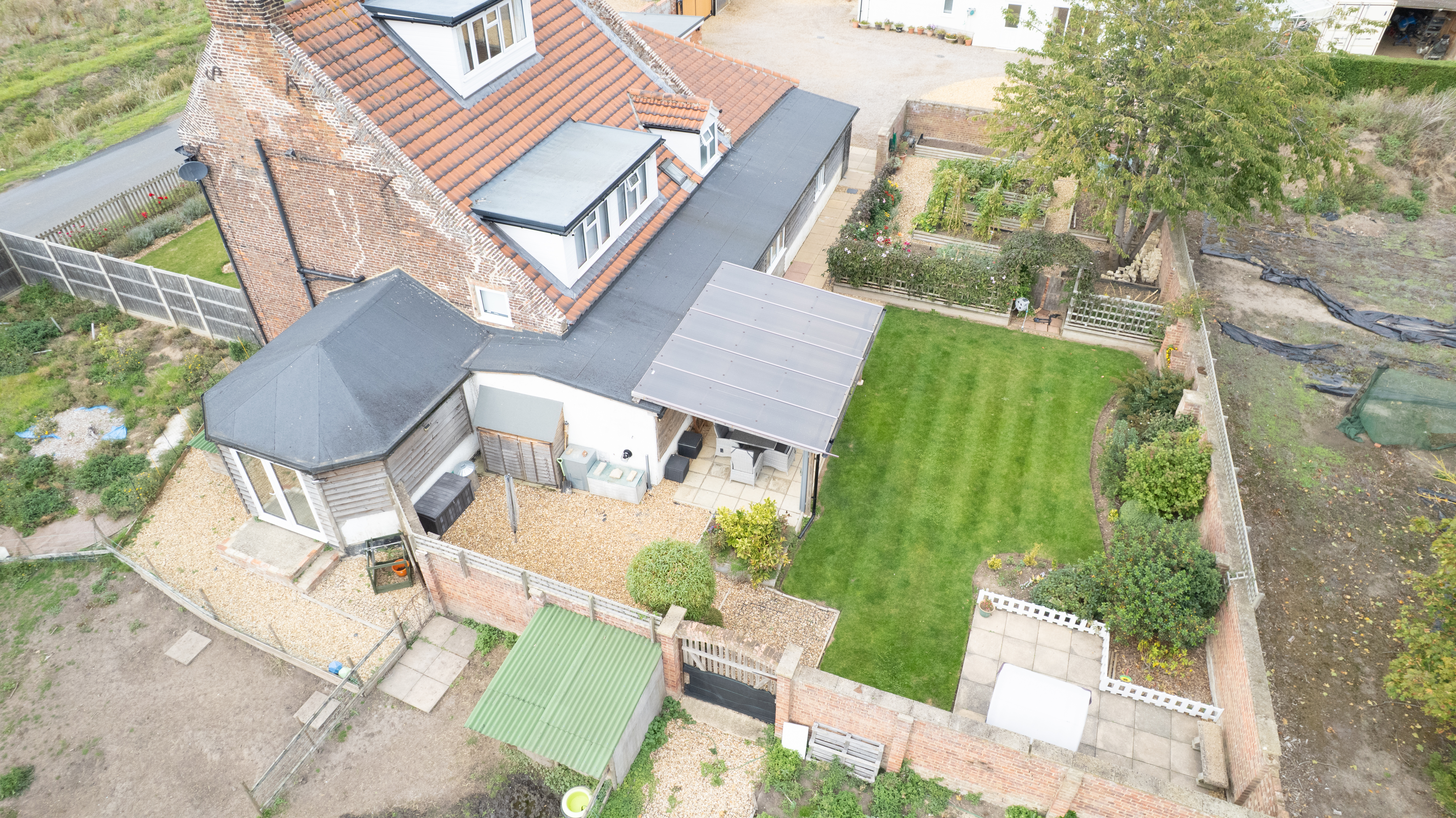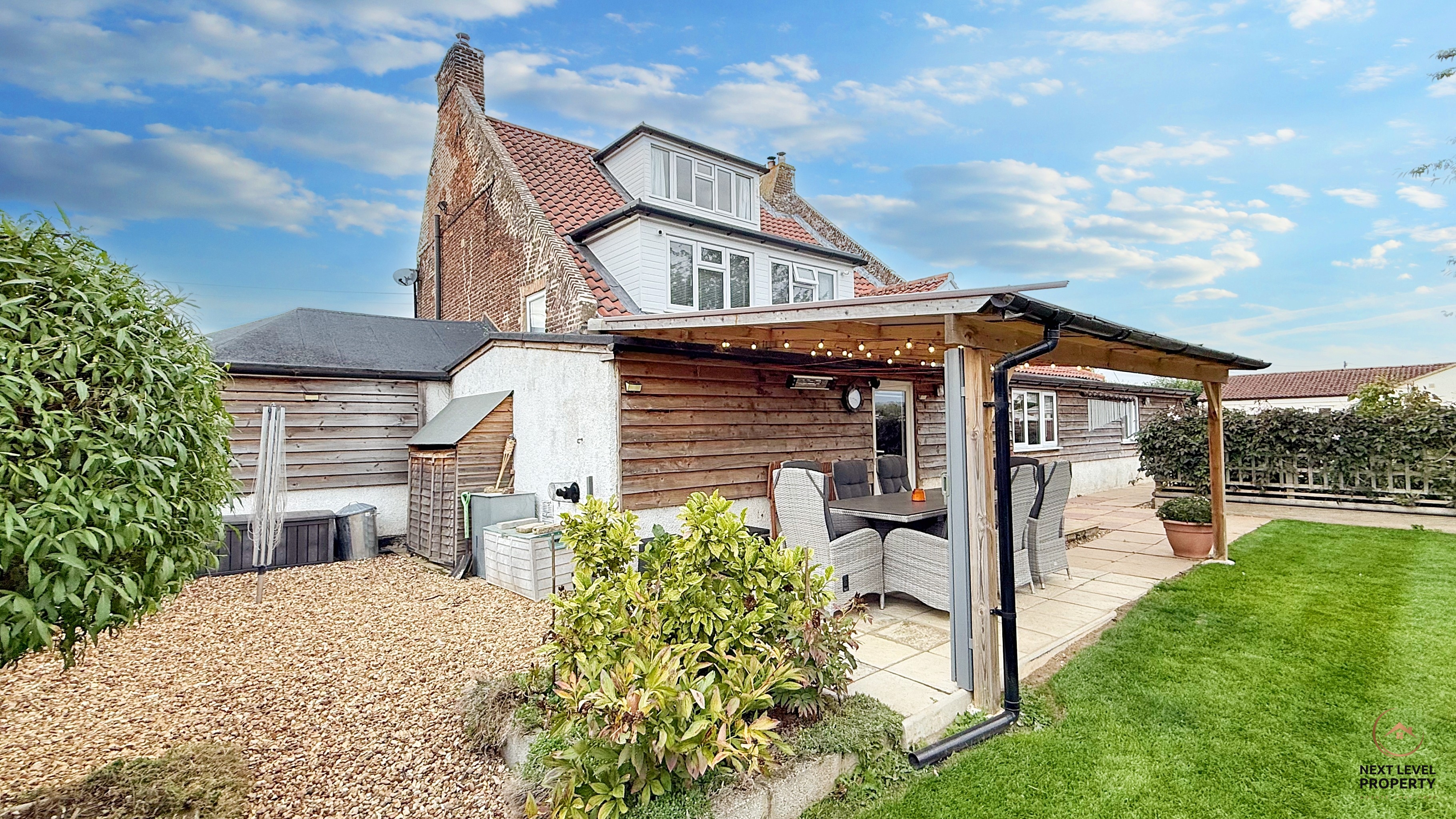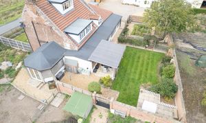 The main house boasts an array of original features, including exposed beams, sash windows and an inglenook fireplace with bread oven, while providing all the space needed for modern family life. Recent works have created a large and inviting living room with French doors to the garden, alongside a stunning newly fitted kitchen/diner with granite-topped island, vaulted ceiling, Velux windows and generous dining area — perfect for entertaining. Practical additions such as a walk-in pantry, utility room, laundry room and boot room ensure the home functions beautifully day to day. Further rooms, including one of the bedrooms, remain unrenovated, giving buyers the exciting opportunity to complete the home to their own taste.