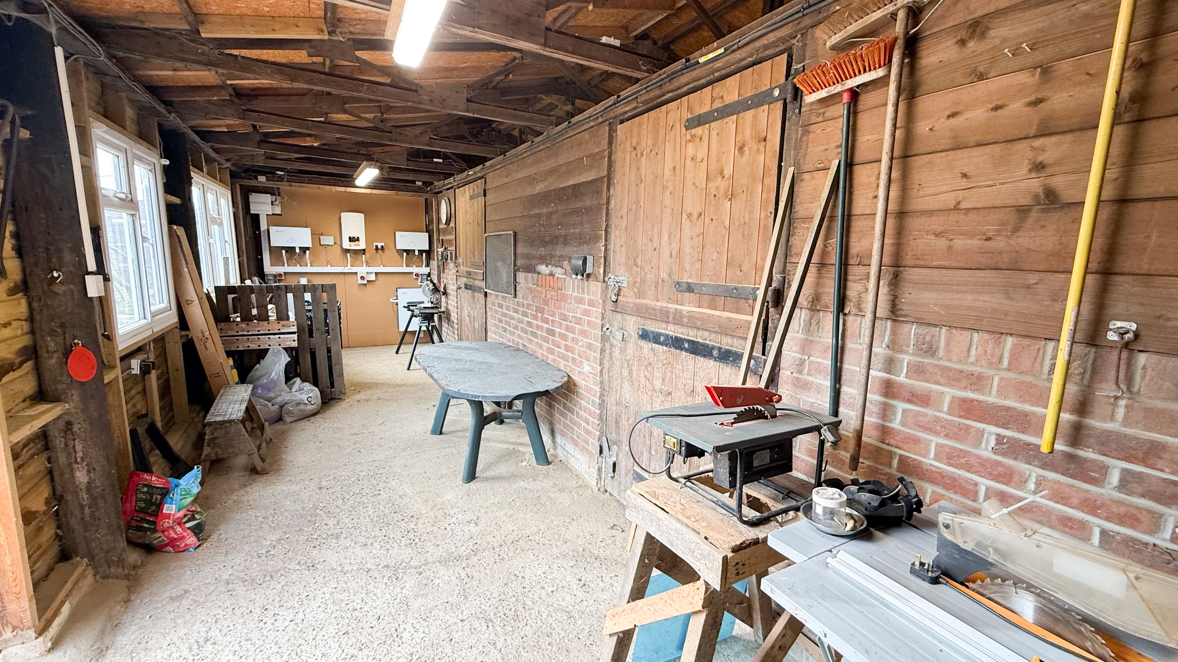 - Stable Block & Yard – Three stables, various powered storage facilities, a large wood store, and a substantial yard ideal for caravan or vehicle storage