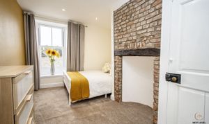 Tastefully renovated, this charming double bedroom features an exposed brick chimney breast as a striking focal point. A fitted wardrobe provides useful storage, while a sash window to the front ensures the room feels bright and welcoming