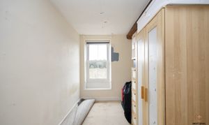 A good-sized single bedroom with a sash window to the front. While not yet renovated, the room offers plenty of potential and could serve as a comfortable child’s room, nursery, or home office