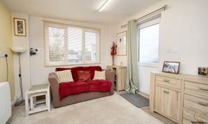 The property is approached via a bright and welcoming entrance porch, with a front door and windows that frame pleasant views across the garden. This light-filled space offers a practical spot for coats and shoes while setting a warm first impression. A further door opens directly into the sitting room, drawing you into the heart of the home