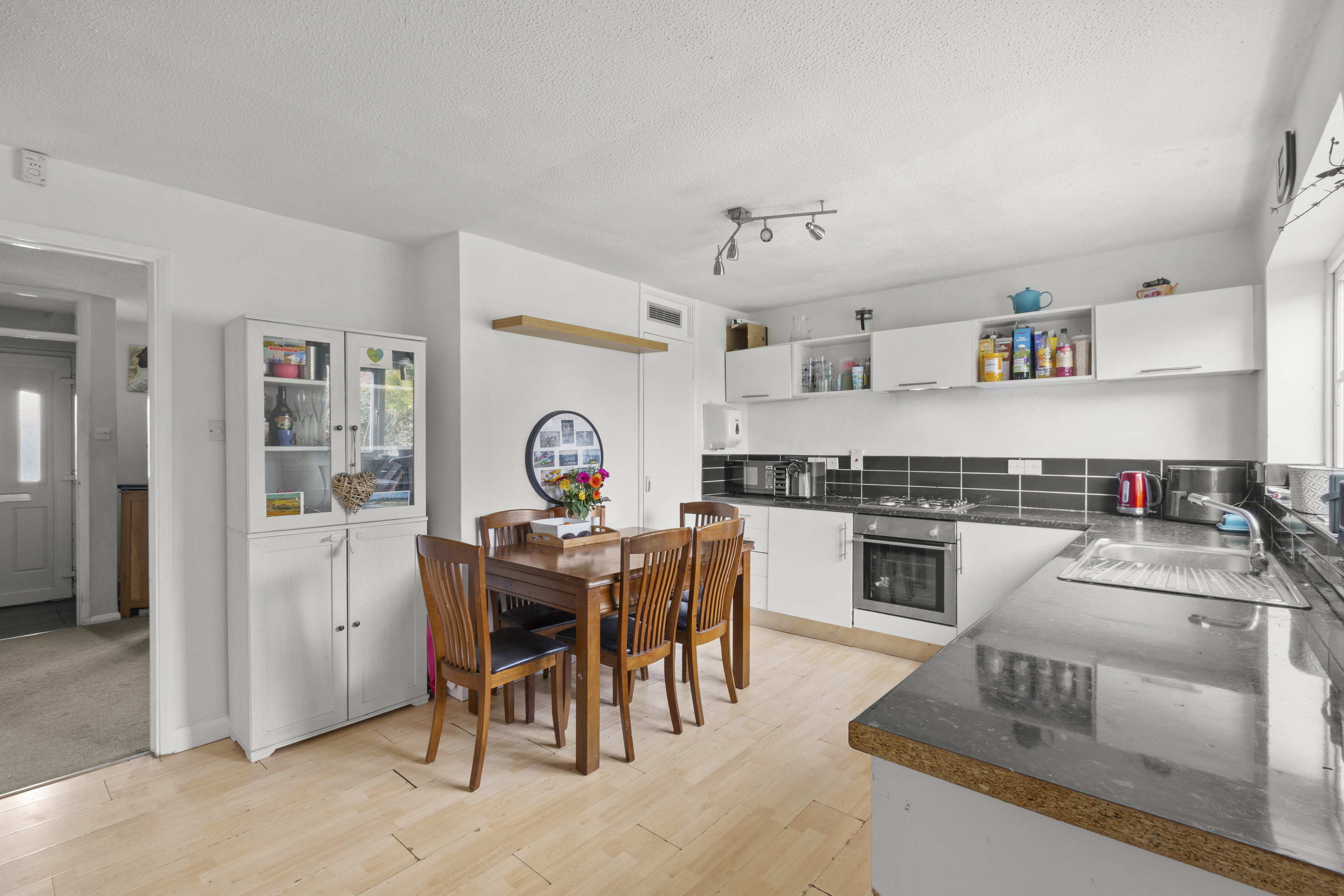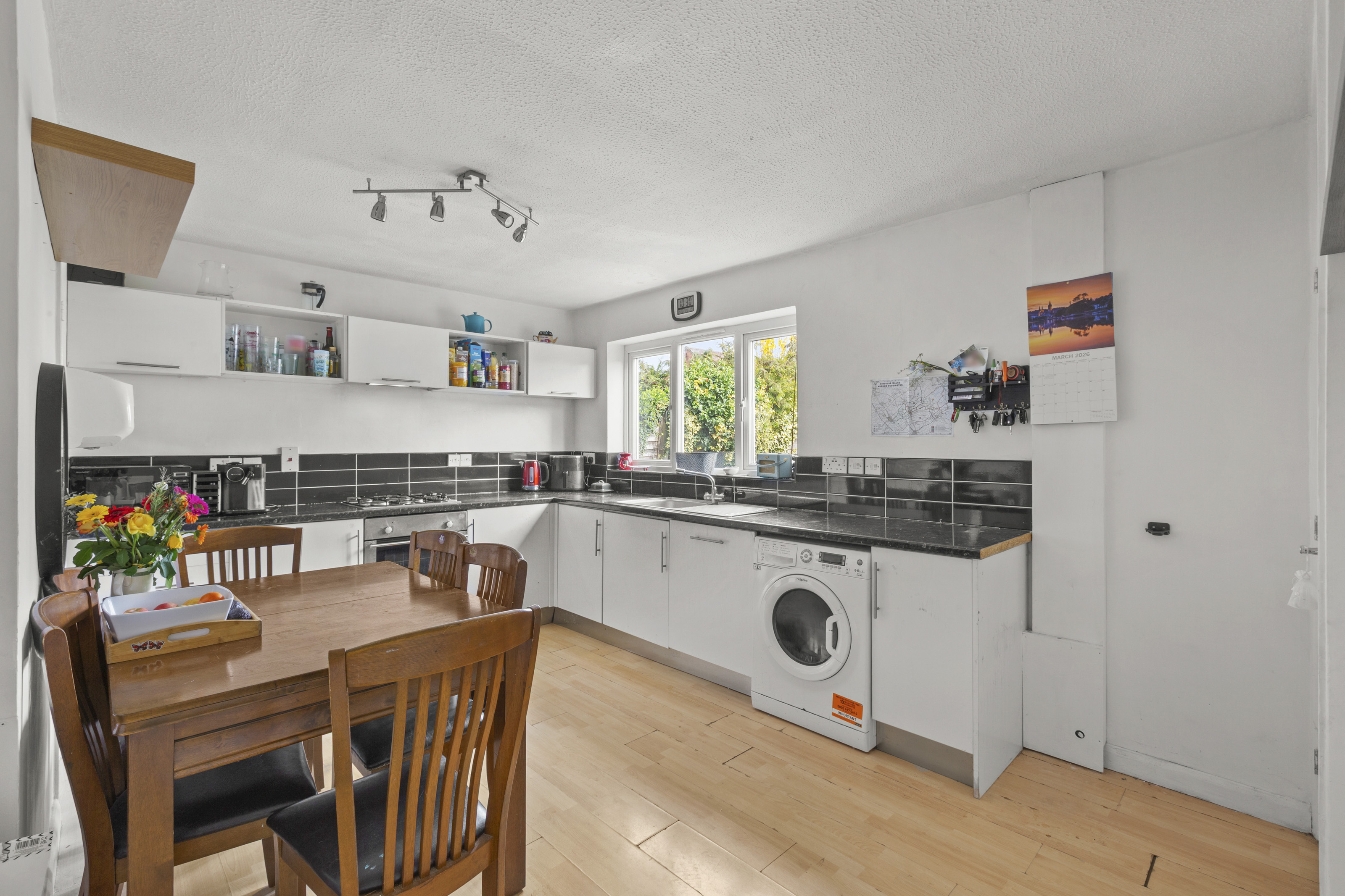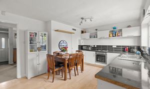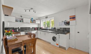 The accommodation begins with a bright and spacious living room, perfect for both relaxing and entertaining, enhanced by an abundance of natural light. To the rear, a well-appointed kitchen/dining room provides an ideal space for modern living, with pleasant views over the garden—perfect for everyday meals or hosting family and friends. A useful downstairs cloakroom completes the ground floor.