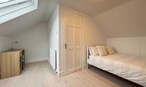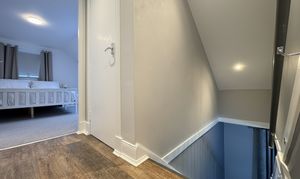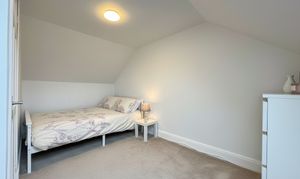 The upper floor forms the extension and offers two additional attic bedrooms accessed from the landing, providing flexibility for guests, home working, or additional storage.