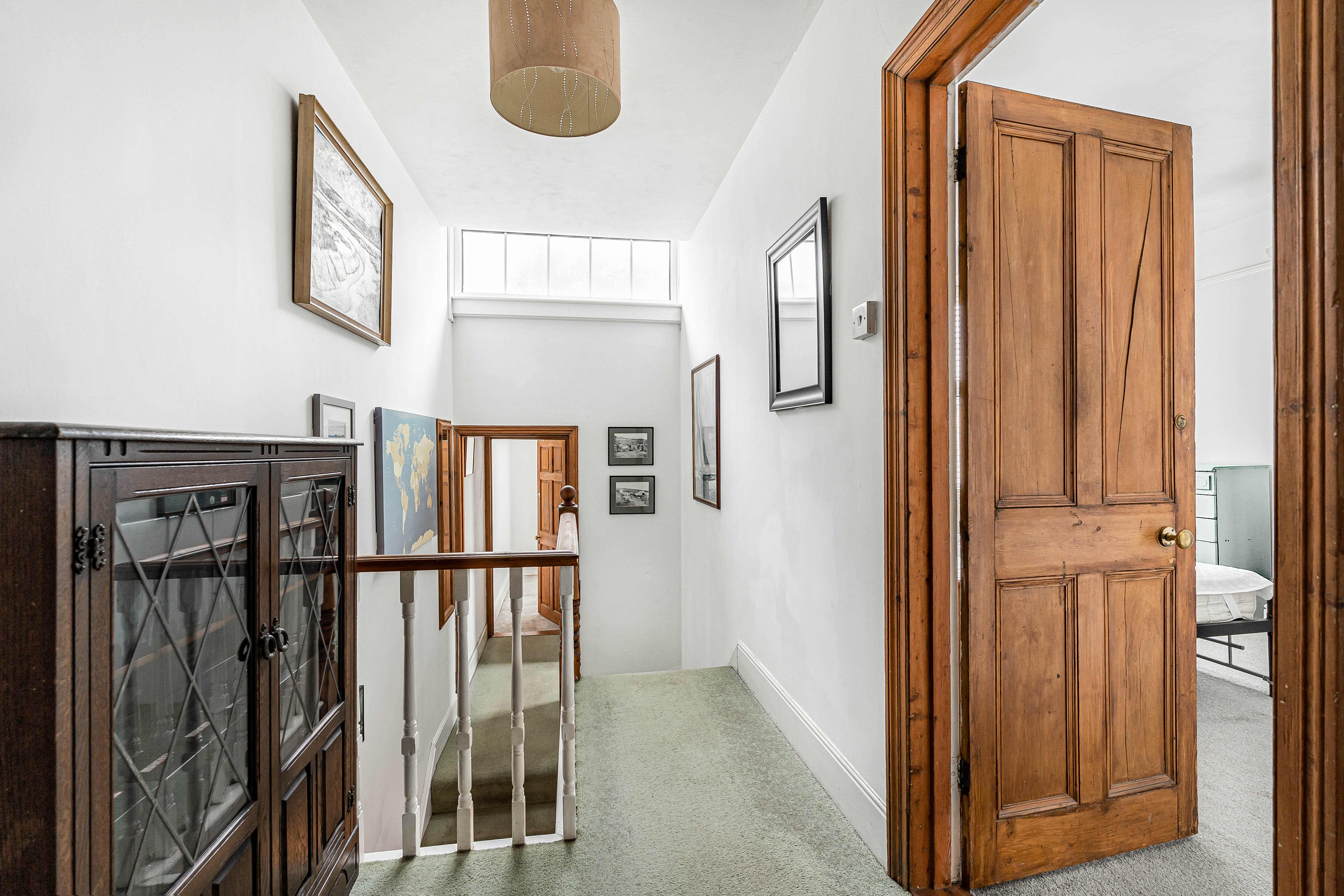 Panelled doors to the bathroom and bedroom four. Steps rising to further landing.