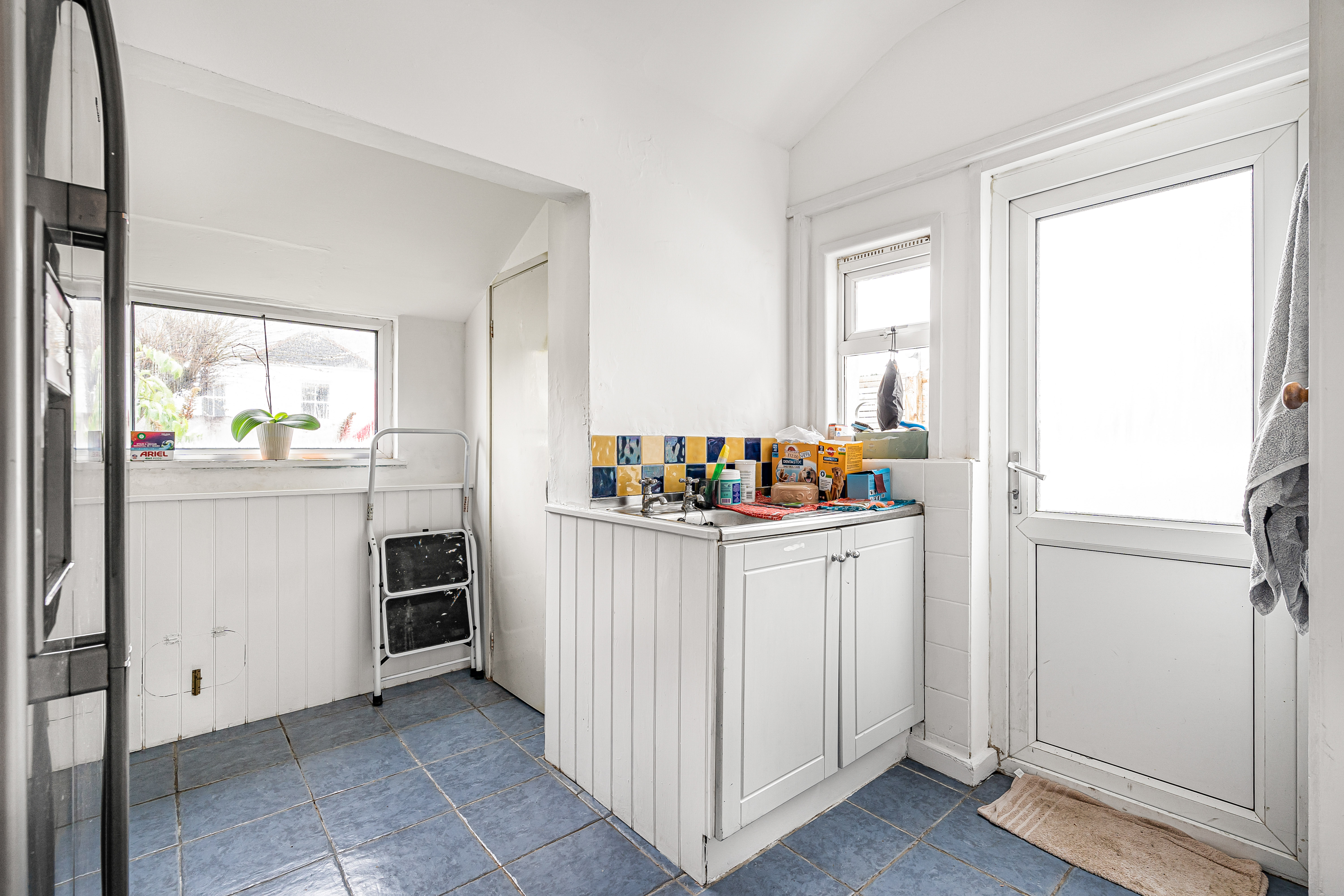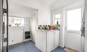 UTILITY ROOM - Roll-top worksurface with space and plumbing under for washing machine. Stainless steel sink and drainer with cupboards under. Replacement uPVC double glazed window overlooking the rear courtyard. Replacement uPVC double glazed window and part panelled uPVC obscure double glazed door to the side elevation and opening onto the courtyard gardens. Tiled flooring. Radiator. Cupboard housing the wall mounted Vaillant boiler. Space and plumbing for American-style fridge/freezer.