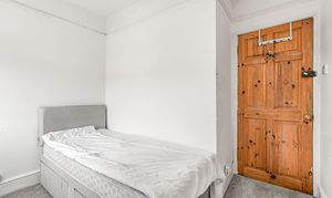 First measurement taken into recess with shelving and hanging space built into either side of the chimney breast. Replacement uPVC double glazed window to the front elevation. Radiator. Picture rail.