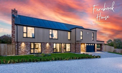 This architecturally designed home showcases meticulous craftsmanship, featuring striking glazed windows that create perfect symmetry across all elevations, offering a captivating visual experience inside and out. Expansive floor-to-ceiling windows bathe the interiors in natural light while framing stunning views of the Malvern Hills and beyond. The contemporary design effortlessly combines sophistication and practicality, with a durable and energy-efficient timber frame construction. Boasting four bedrooms, five bathrooms, and two dressing rooms, this exceptional property provides an abundance of spacious and beautifully proportioned living areas.