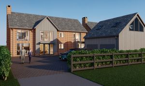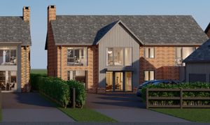 The exterior will feature a distinctive combination of high-quality brickwork, vertical larch cladding and zinc detailing, all set beneath a slate-grey roofline for a timeless yet modern aesthetic. A matching detached double garage with first-floor storage/office space will provide valuable flexibility, ideal for home working, hobbies or additional storage.