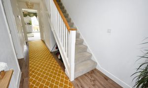 Composite door to the front, stairs leading to the first floor, under-stairs storage cupboard, radiator, LVT flooring.