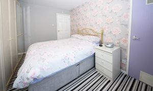 uPVC double glazed window to front aspect, electric points, carpeted flooring, radiator, built in storage cupboard housing a wall mounted Worchester combi boiler