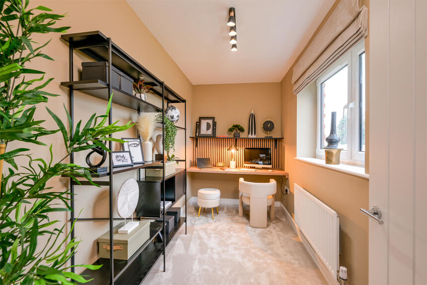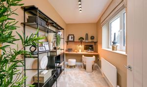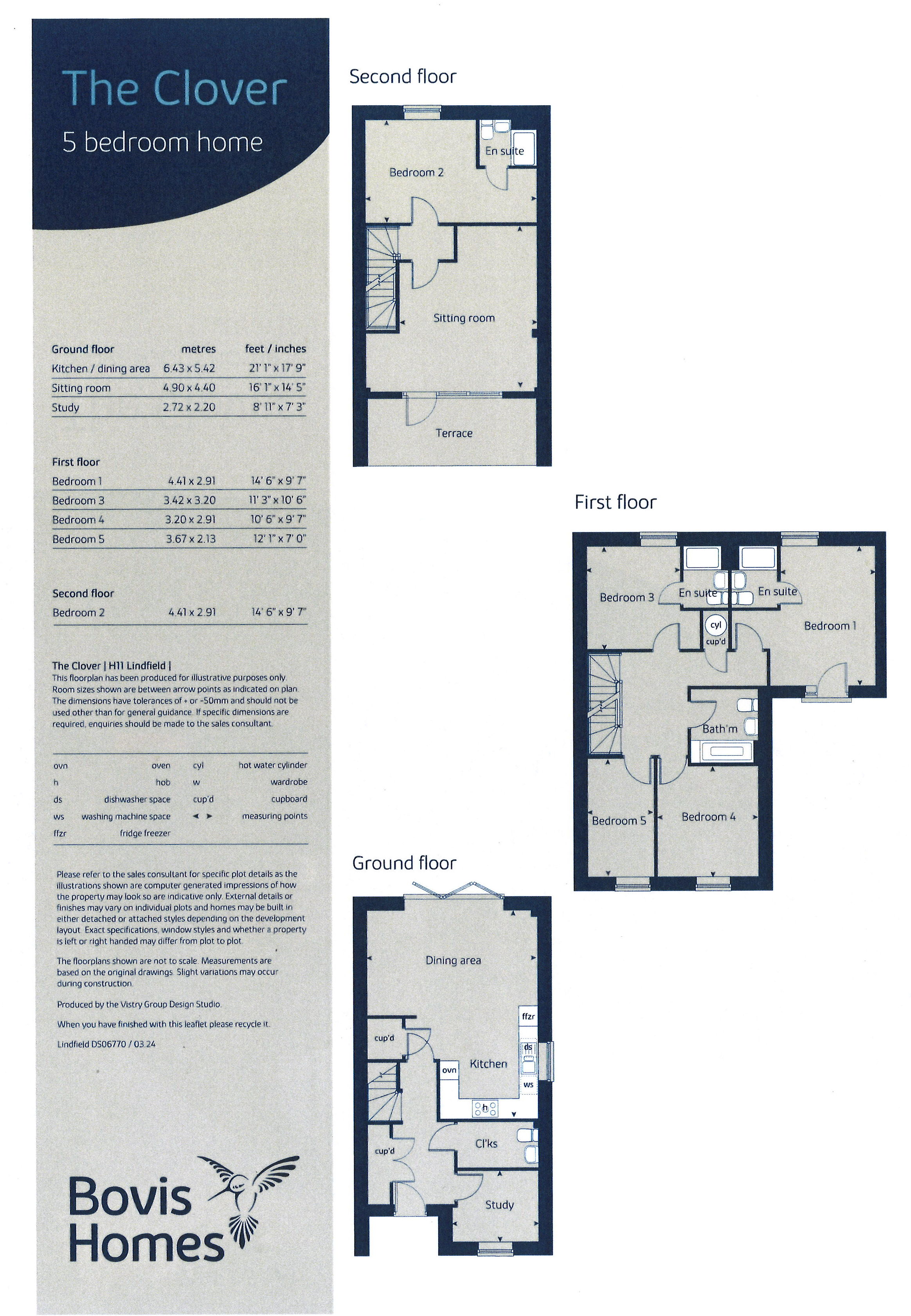 The Clover is a five bedroom detached house which combines instant kerbside appeal with the latest energy-efficient green technologies. This stunning new home offers a flexible layout to suit many different lifestyles. Ground Floor: features an open plan Kitchen / Dining Room with bi-fold doors leading to a private garden, along with a Study and Cloakroom/WC.