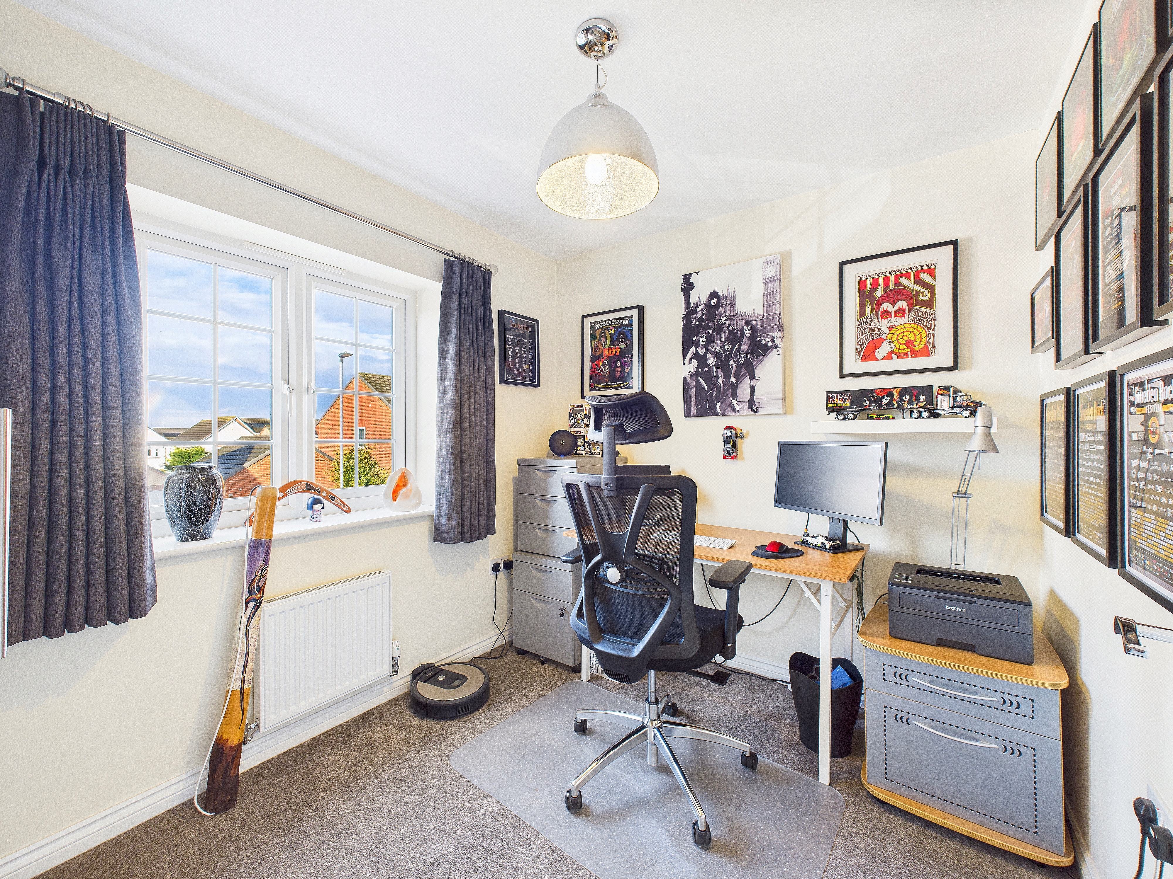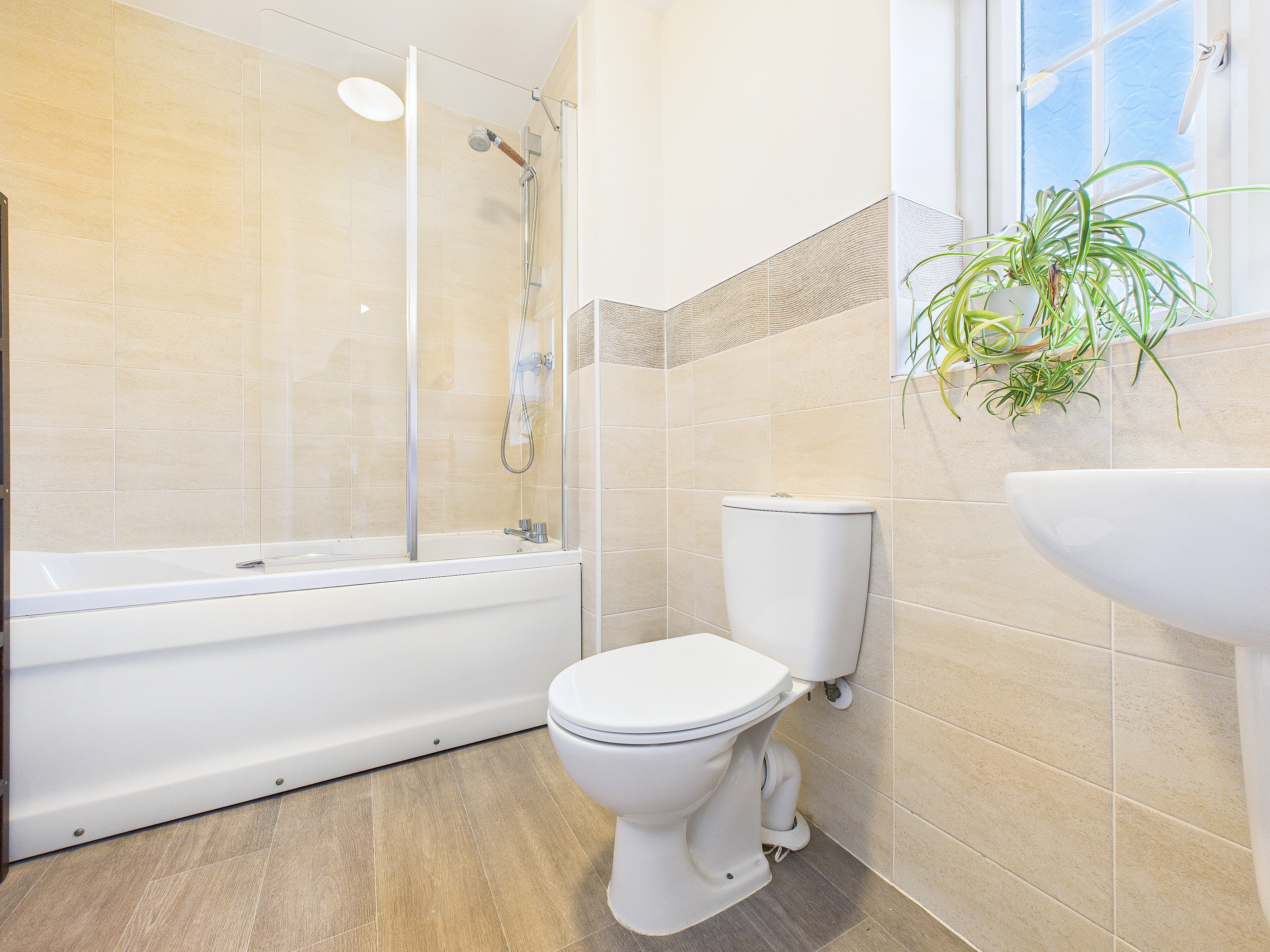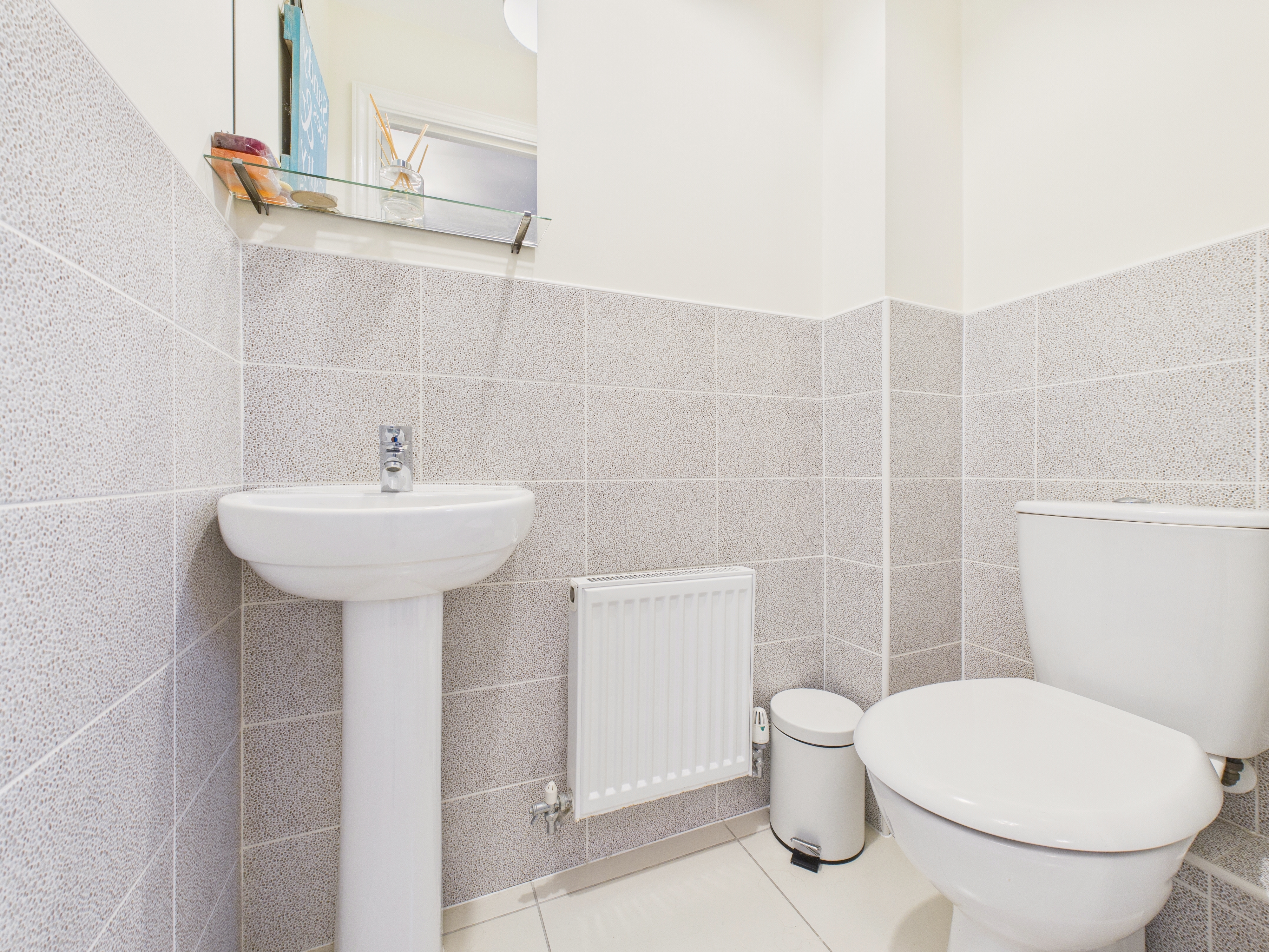 Upstairs, the main bedroom benefits from its own en-suite shower room, enhanced with upgraded tiling, while three further bedrooms provide flexibility for family living, guests, or home working. A modern family bathroom, also finished with upgraded tiles, completes the first floor along with a bright landing space and a useful store cupboard.