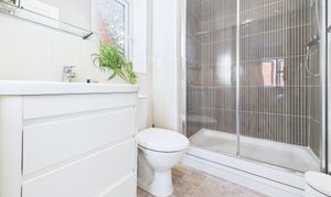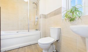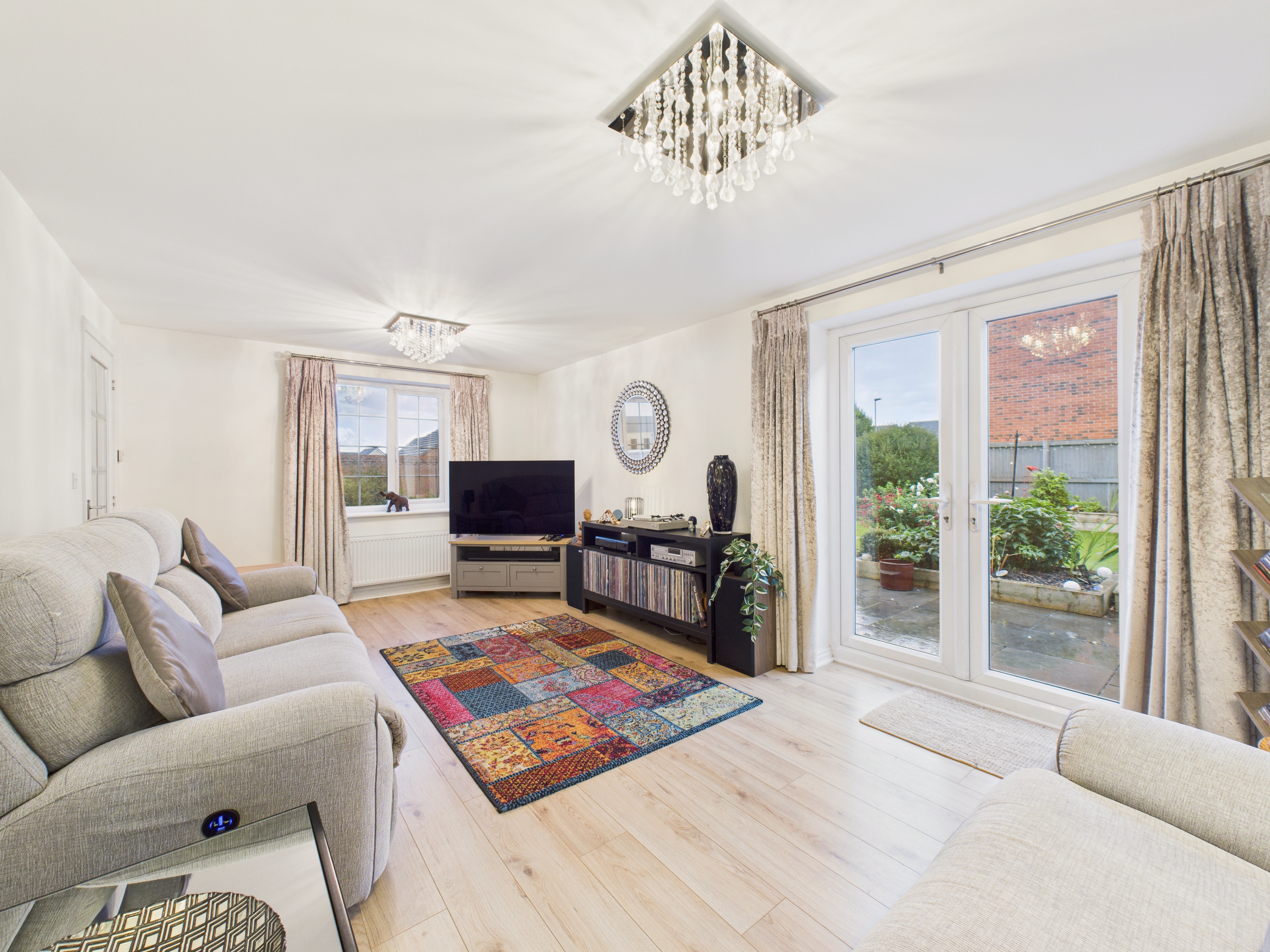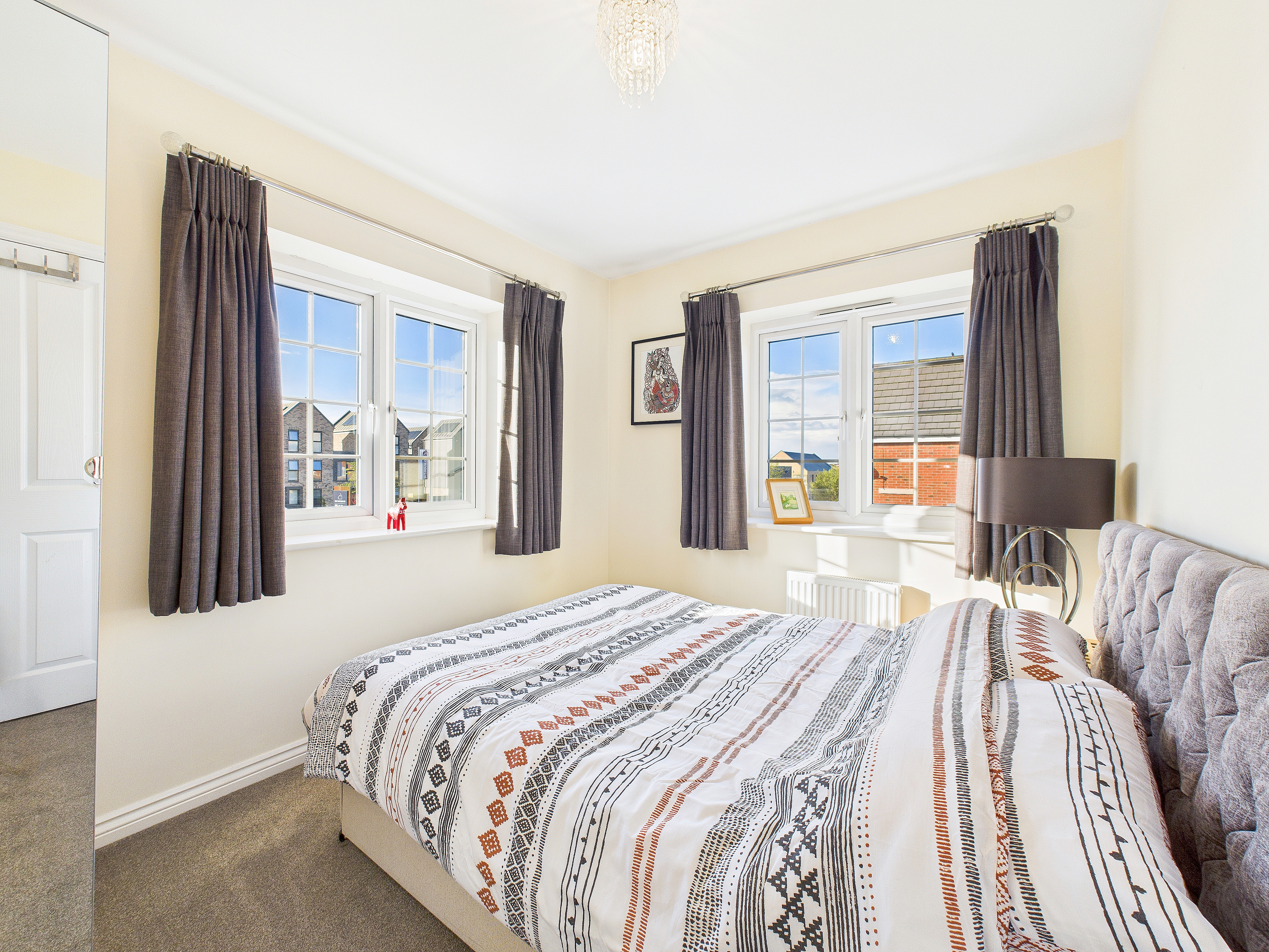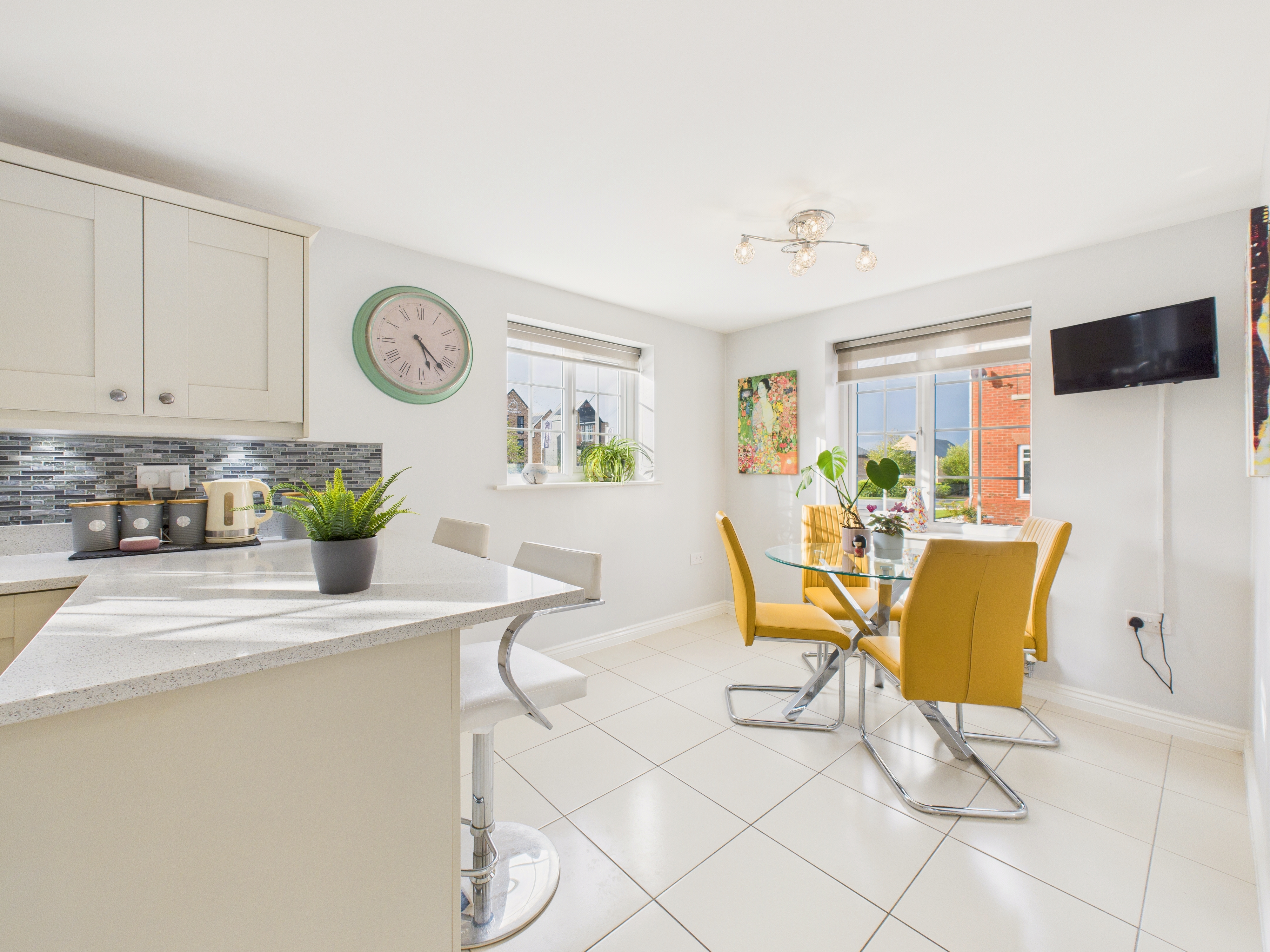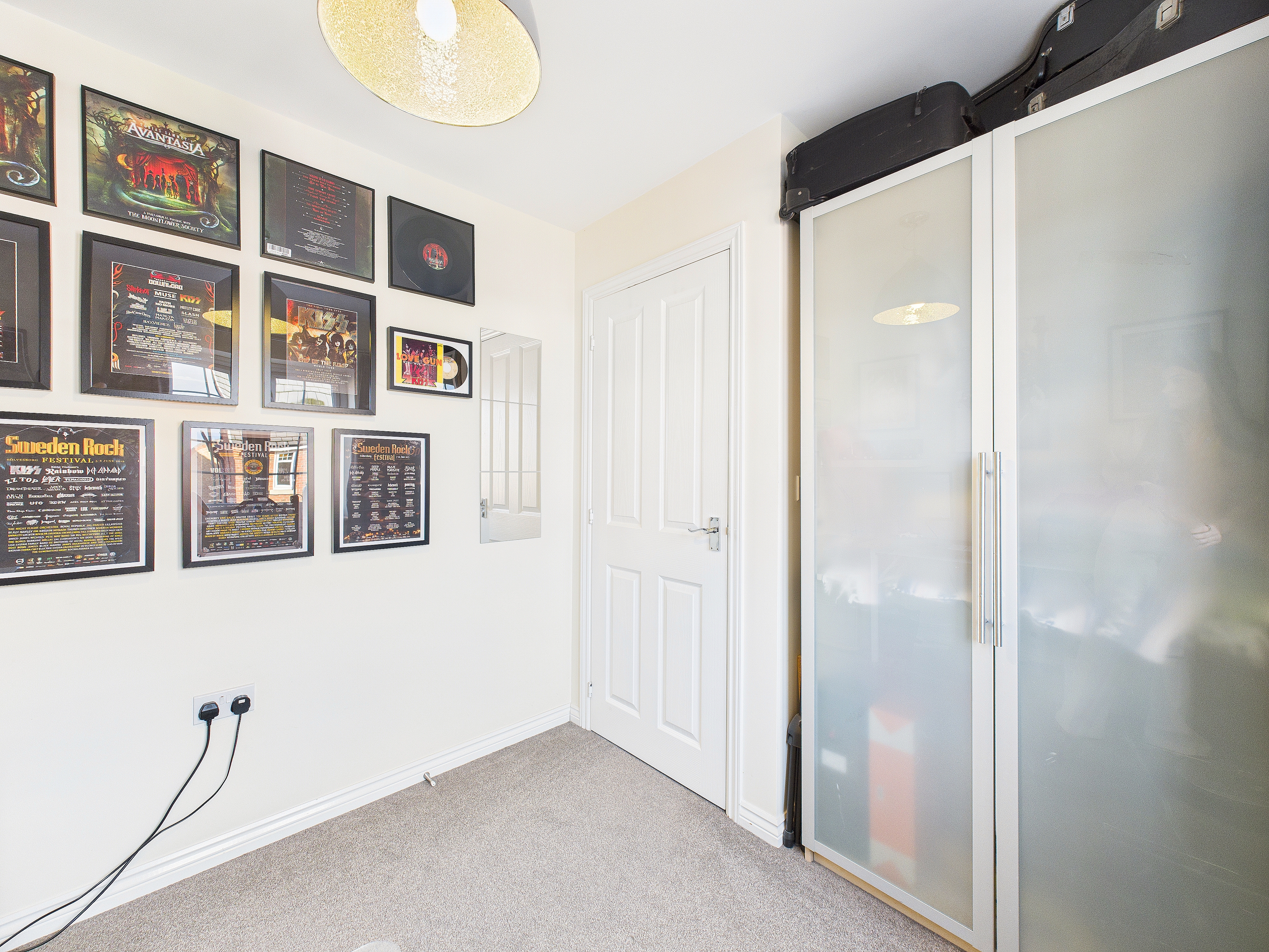 Upstairs, the main bedroom benefits from its own en-suite shower room, enhanced with upgraded tiling, while three further bedrooms provide flexibility for family living, guests, or home working. A modern family bathroom, also finished with upgraded tiles, completes the first floor along with a bright landing space and a useful store cupboard.