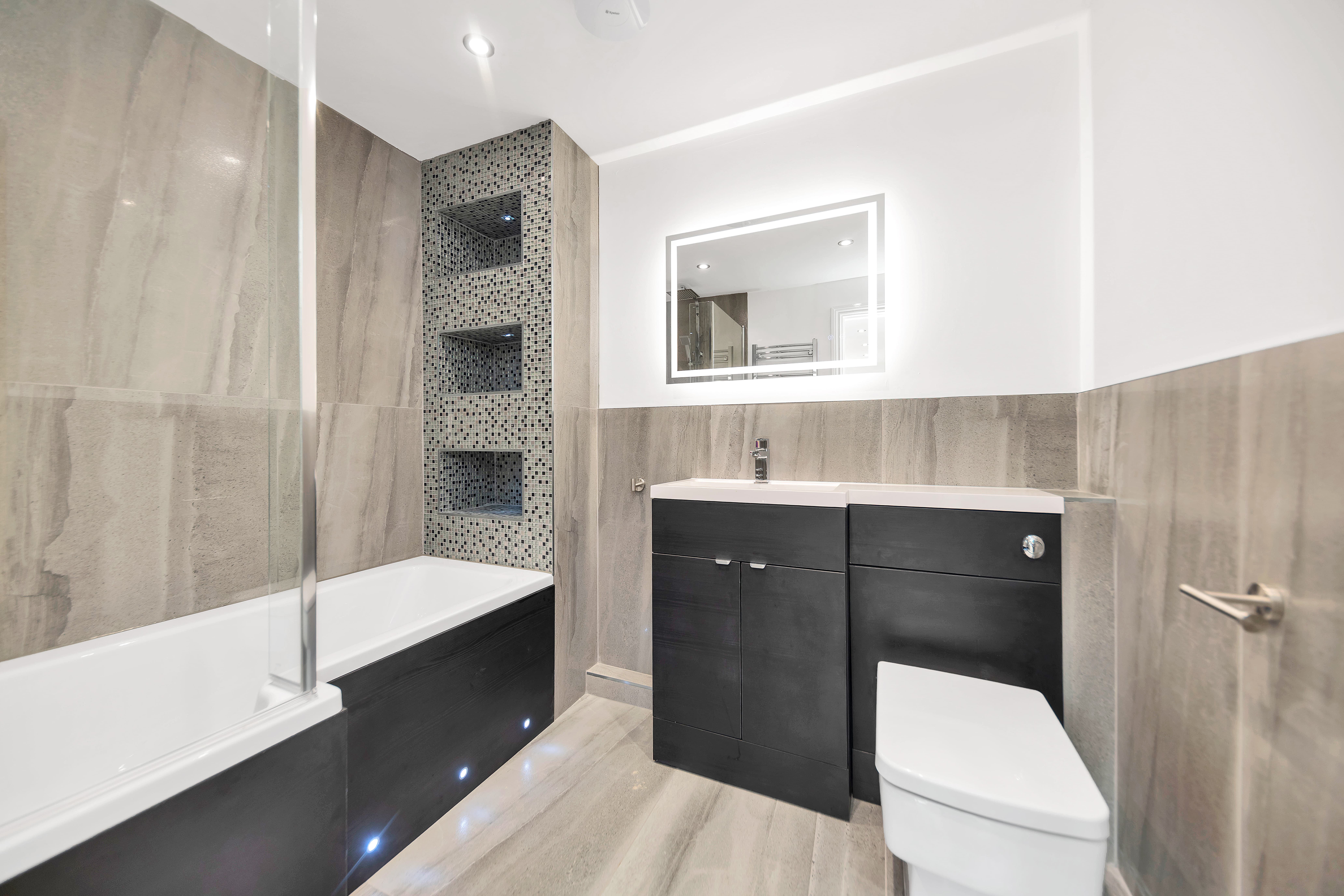 The fourth bedroom can also be found on the ground floor and could be used as fantastic guest quarters if desired, with a stunning attached en-suite bathroom, comprising a bath with an overhead shower and inset storage, a WC, a hand wash basin and a heated towel rail. Upstairs to the first floor, this lovely home continues to impress, with 3 further bedrooms, integrated storage and a family bathroom comprising a bath with an overhead shower, a WC and a hand wash basin.