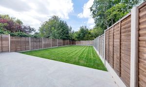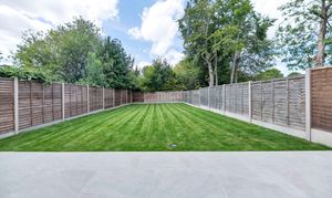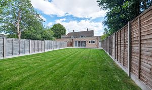 Outside, to the rear, the landscaped garden is an excellent size, fully enclosed by fencing and offering a beautiful space to sit and relax after a busy day. It is laid mainly to lawn, with a paved patio spanning the width of the house, providing space for garden furniture, cooking al fresco and entertaining guests. There are lovely tree views to the rear, side access back through to the front of the property, and huge scope for new owners to put their own stamp on things.