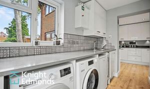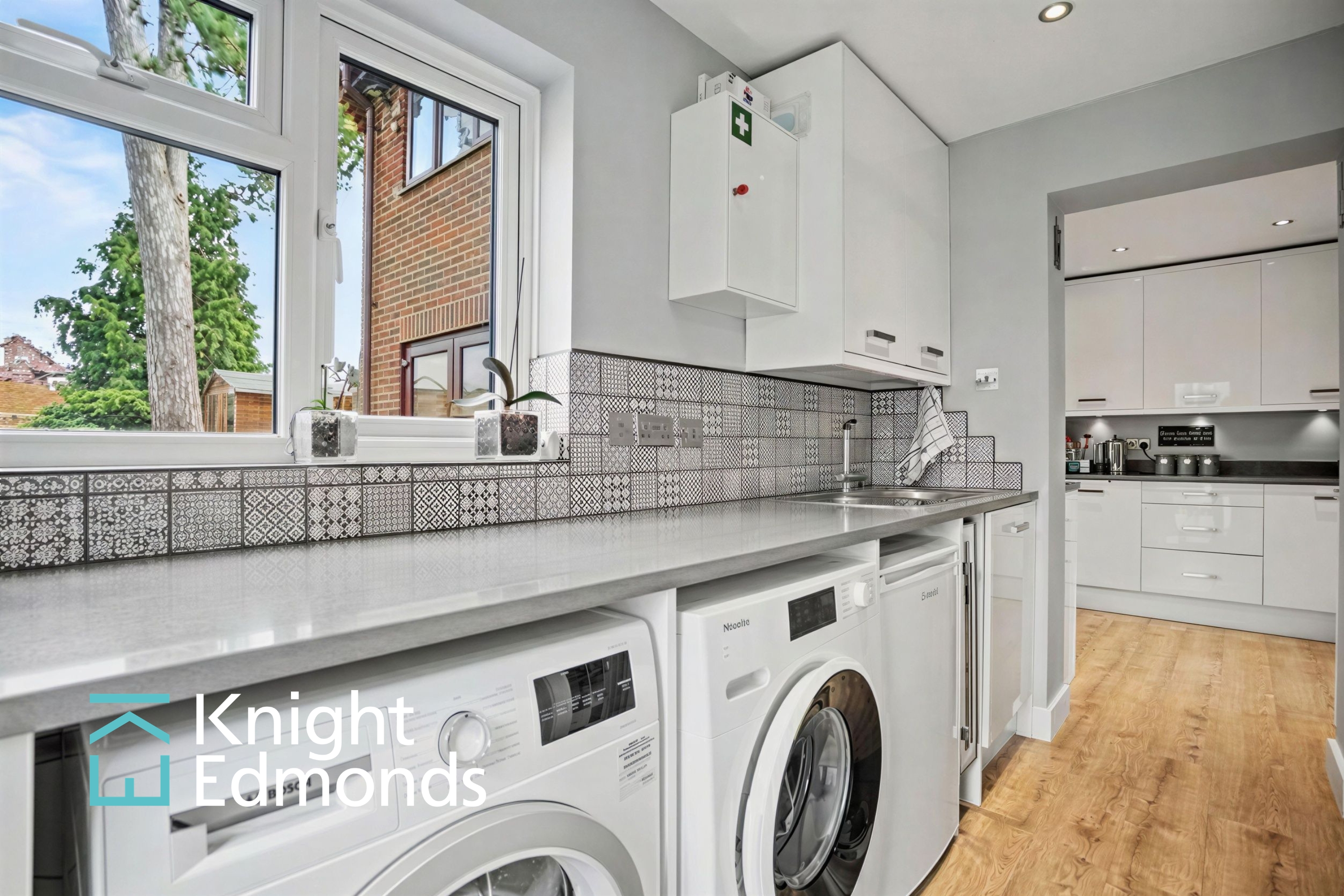 The kitchen is well positioned overlooking the garden and provides ample worktop and storage space, forming the heart of the home and ideal for everyday family living. Adjacent, a separate utility room adds practicality, keeping laundry and household tasks neatly tucked away while providing additional storage and external access.