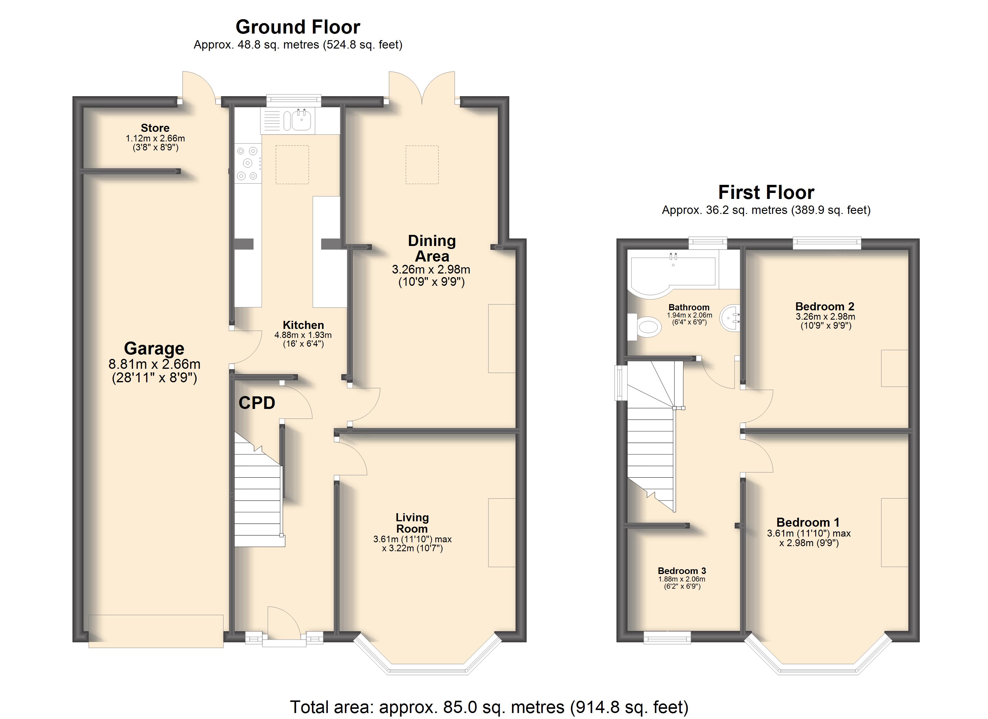 The first floor hosts three excellent-sized bedrooms, two doubles and a single, all accessed from a bright, airy landing. The modern fitted bathroom features a modern three-piece suite.
