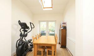 You’re welcomed into a good-sized entrance hall, setting the tone for the excellent-sized accommodation that follows. The light-filled fitted kitchen provides a practical space for day-to-day living, while the separate dining room enjoys doors opening directly onto the rear garden, creating a seamless flow for entertaining and family gatherings. The bay-windowed living room offers a warm and inviting setting, perfect for relaxing throughout the day.