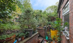 Outside, the generously sized, tiered rear garden offers plenty of space to enjoy the outdoors, with mature planting providing a sense of privacy and character.