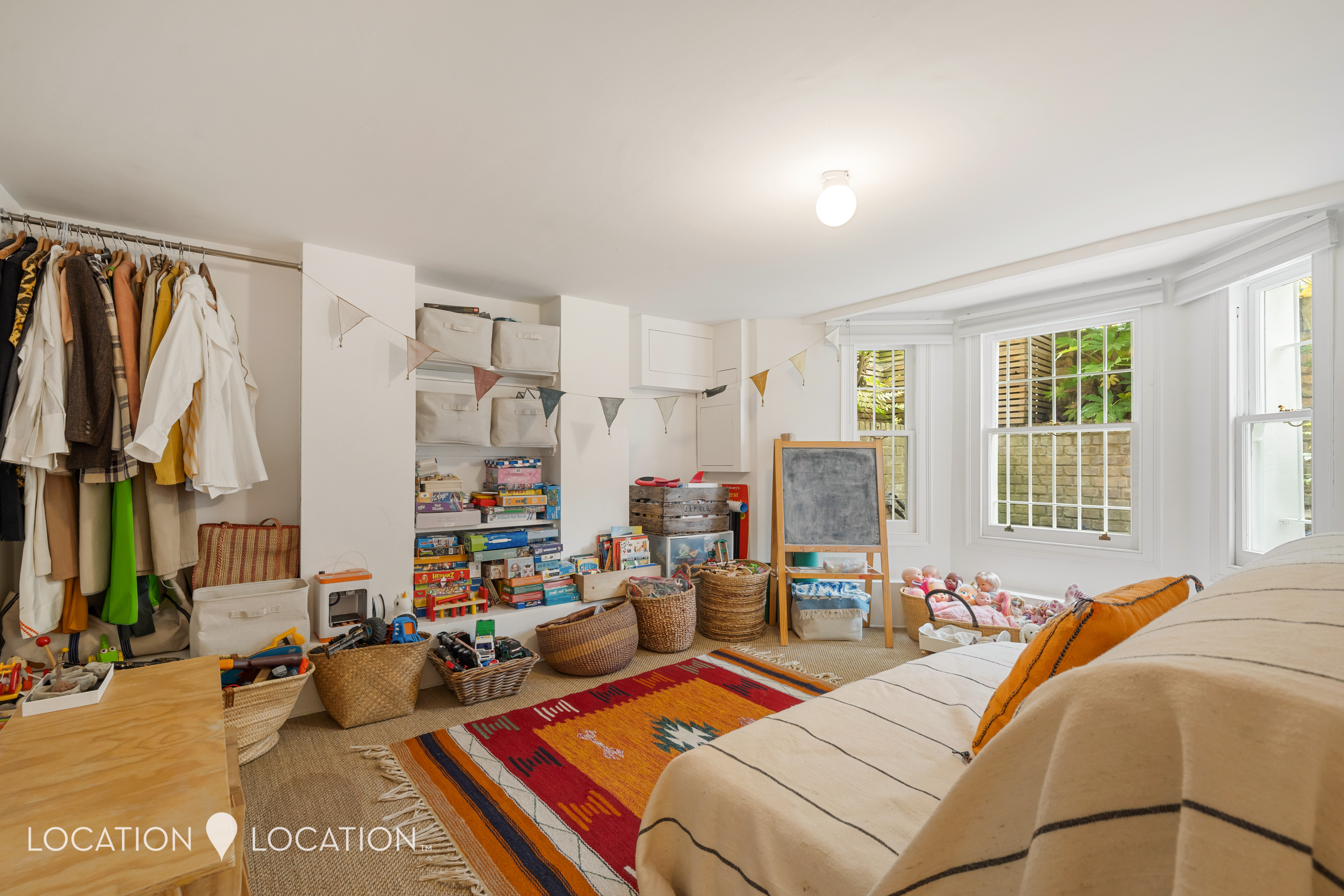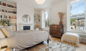 Spanning four storeys, this handsome mid-terraced home offers a charming and bright interiors. The ground floors offer a through-reception room with original bay, high ceilings and fireplaces, a stunning full-width kitchen/diner (complete with walk-in pantry), and a spacious playroom and downstairs shower room. The garden is leafy and landscaped, with space for outdoor cooking and alfresco dining.