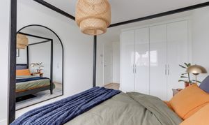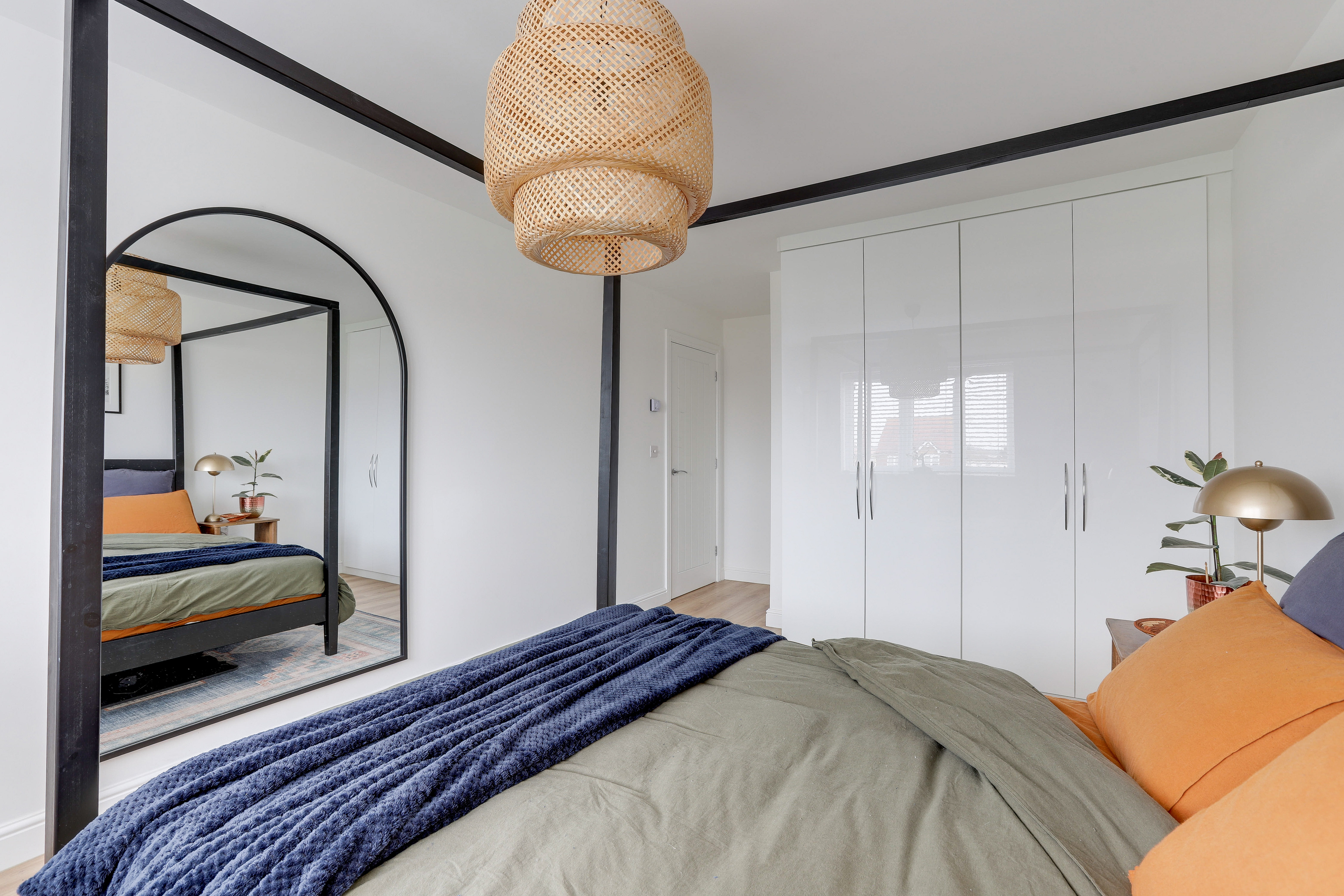 The first bedroom has a UPVC double-glazed window to the front elevation, Moduleo LVT flooring, a radiator, a quadruple wardrobe, and access to the en-suite.