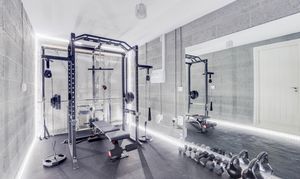 - Integral Garage Currently Used as a Gym with LED Lighting