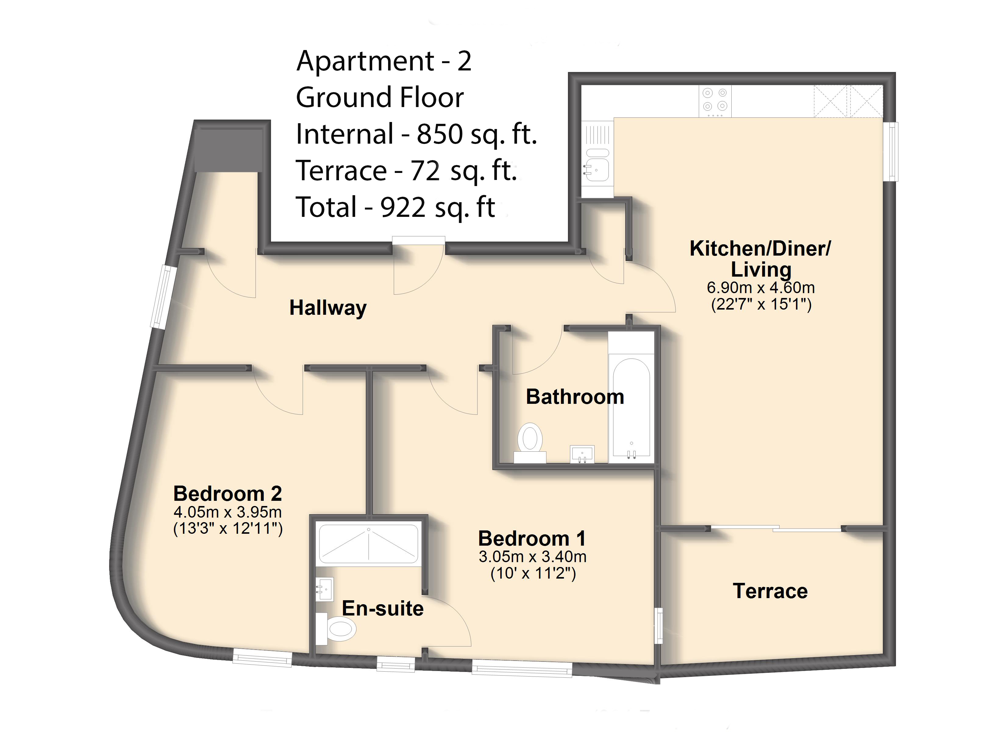 Apartment 2 is a desirable ground floor residence boasting a private terrace, ideal for outdoor dining and relaxing. Set within the exclusive Lydgate Green Apartments, this contemporary home offers spacious, well-designed living accommodation finished to a high specification, seamlessly combining modern style with practical living. The terrace enhances the sense of space and provides a rare opportunity for private outdoor living within this prestigious, gated development.