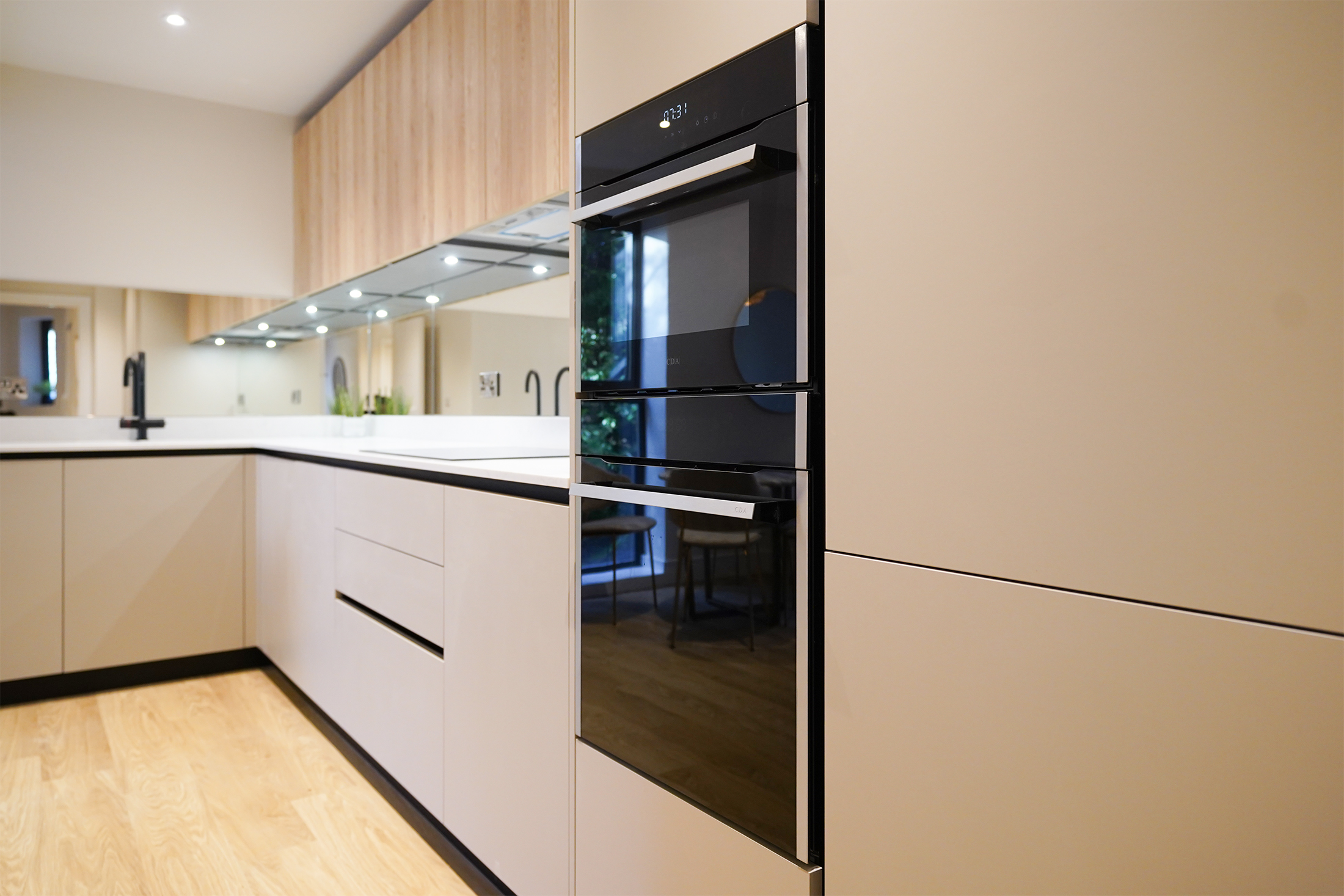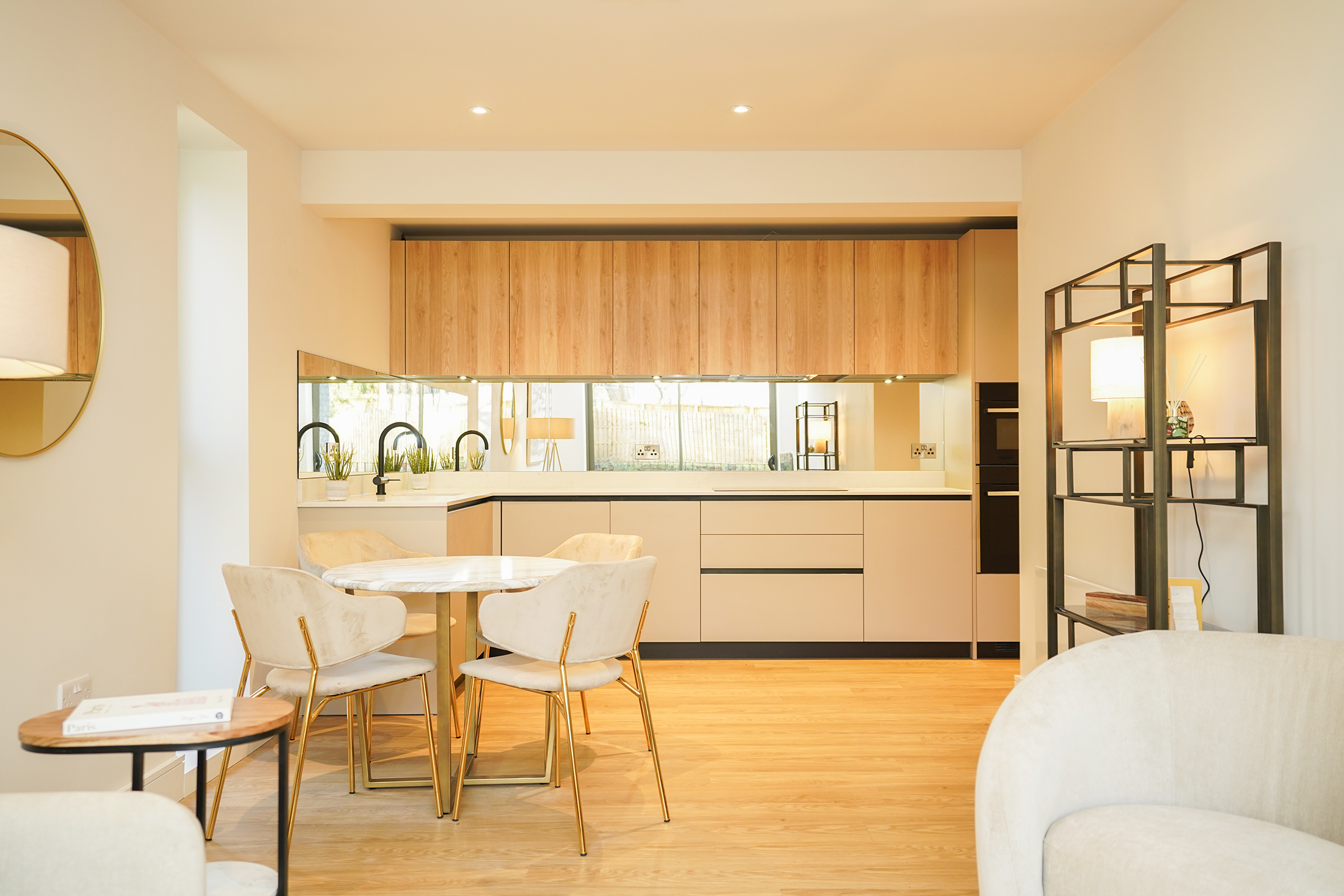 Designer Kitchens: Enjoy the luxury of a Karl Benz kitchen with quartz worktops, a bespoke mirrored splash back, and ambient lighting as standard. Appliances include a fan oven, combination microwave oven, induction hob, integrated fridge freezer, dishwasher, and integrated washer/dryer - plus a convenient boiling hot water tap.