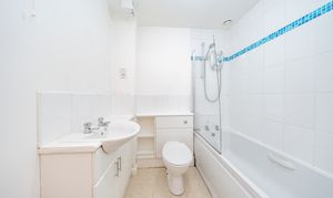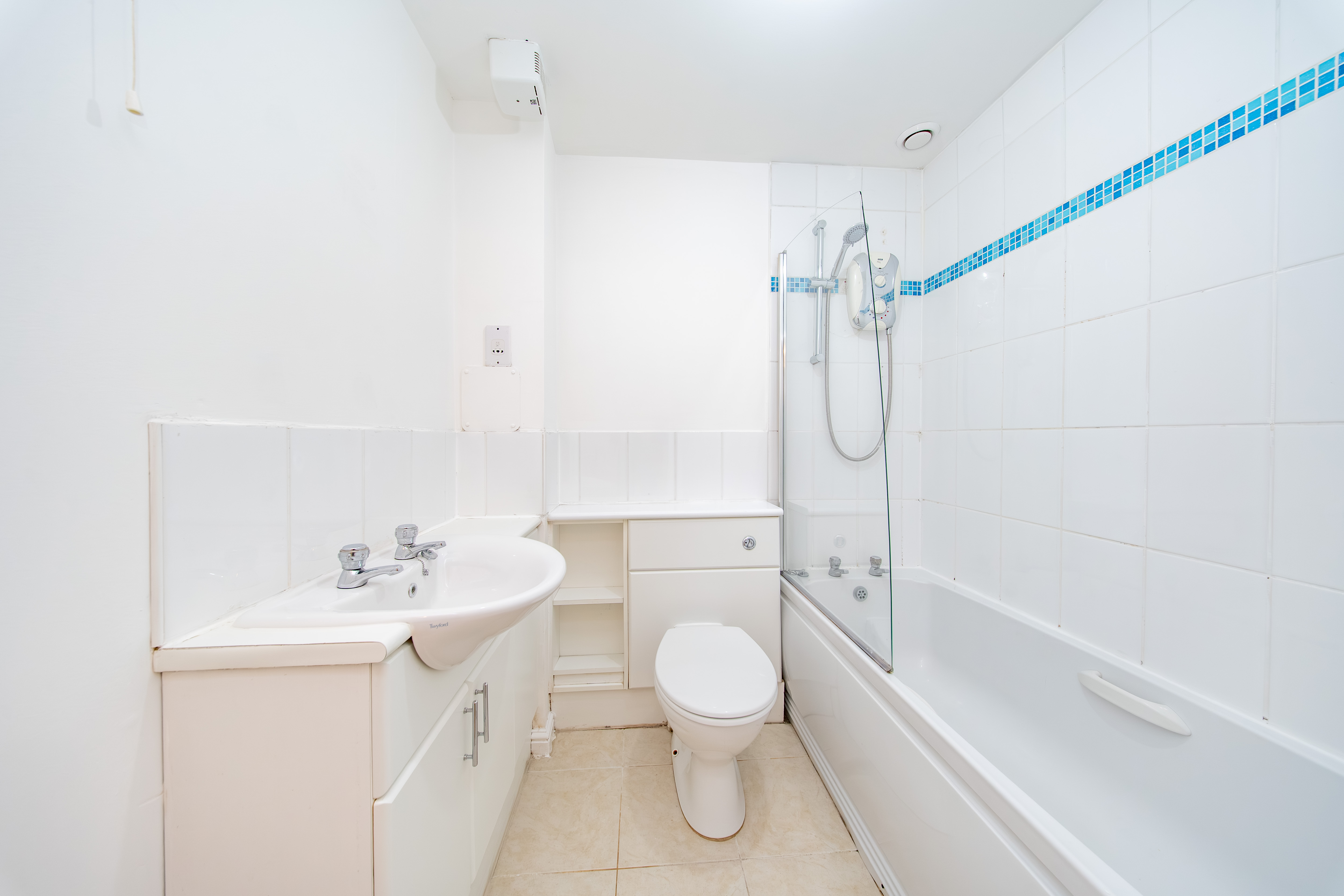 The bathroom is fitted with a modern three-piece suite and features an electric shower over the bath, offering both convenience and efficiency. Bright and easy to maintain, it provides a comfortable and functional space designed for everyday living.