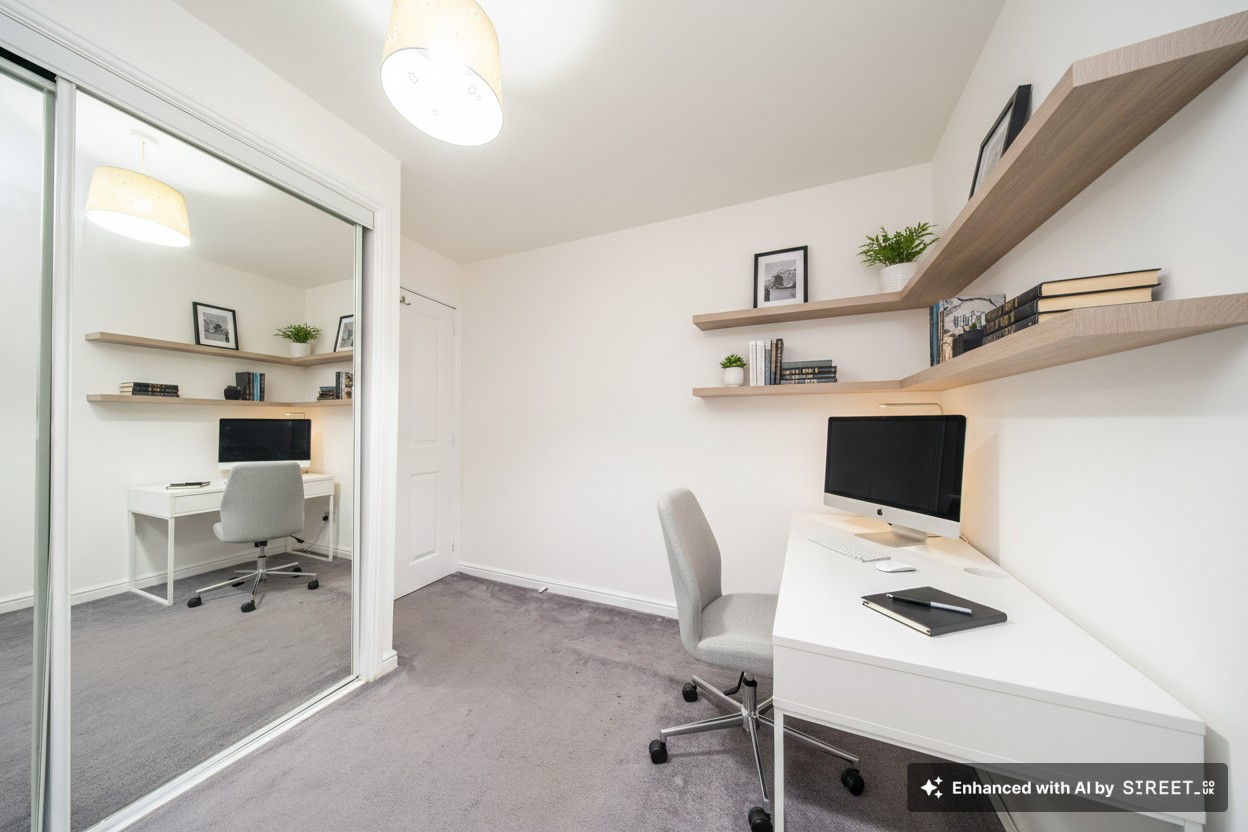 The property features two well-proportioned bedrooms, including a principal bedroom and a second double room, both thoughtfully designed with built-in wardrobes to provide excellent storage while maintaining a neat and uncluttered feel. These bright and comfortable bedrooms offer versatile space for relaxation and personalisation, combining functionality with a calm and welcoming atmosphere.